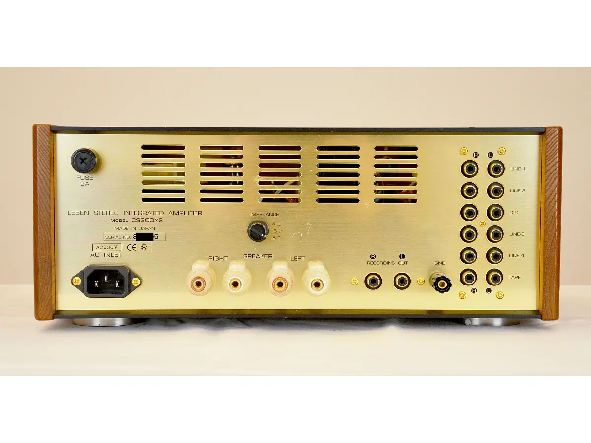 The construction of the CS-300XS reflects a highly refined handcrafted philosophy. Internal wiring is entirely point-to-point without the use of printed circuit boards, while the valves are mounted on elegant gold-plated sockets. The power supply is built around a robust main transformer accompanied by two newly developed proprietary Leben output transformers, designed to extend high-frequency response and improve tonal accuracy.