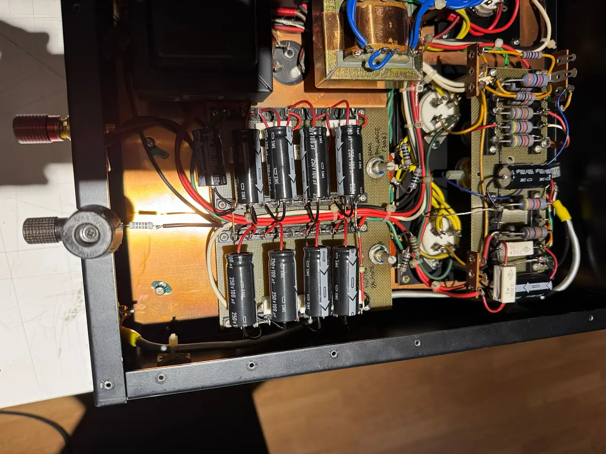 - Output impedance: Output transformer secondary wired for 8 Ohms