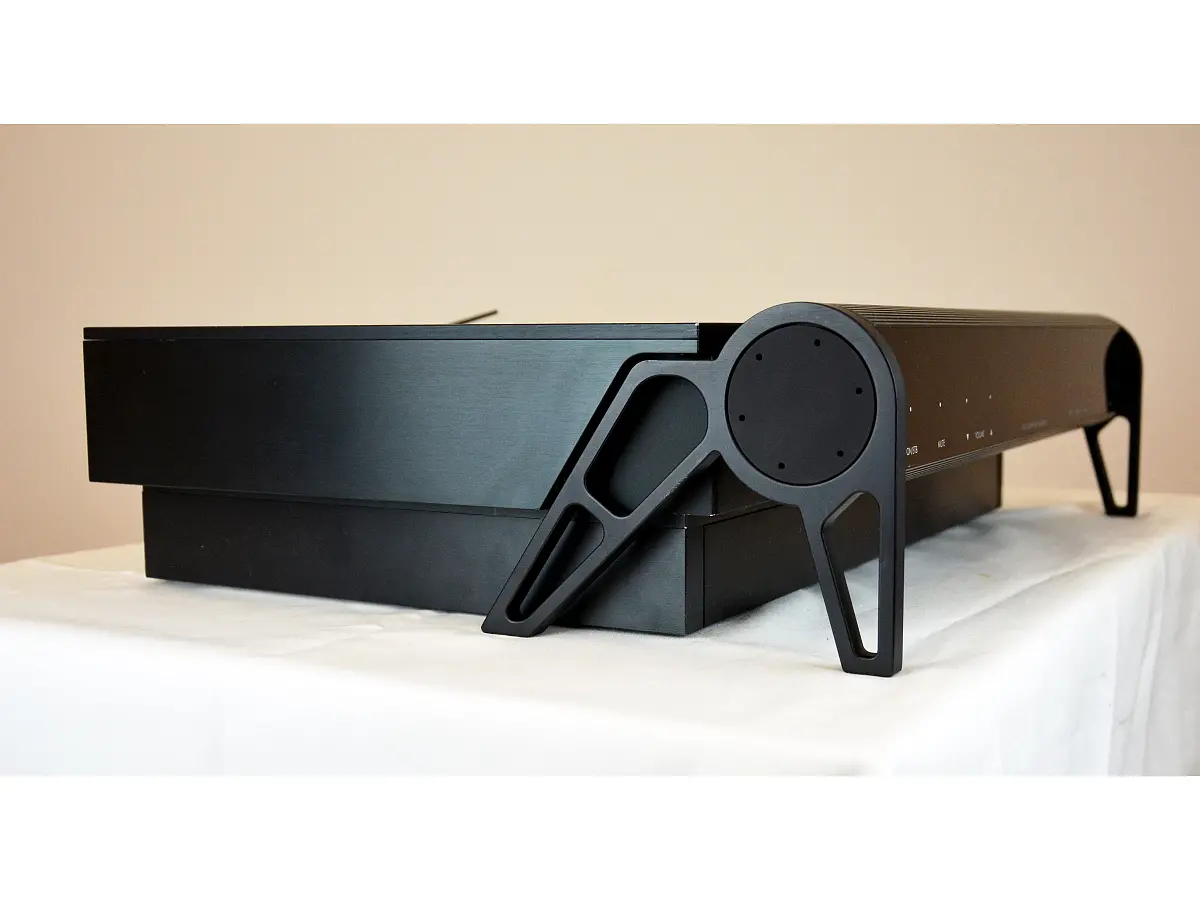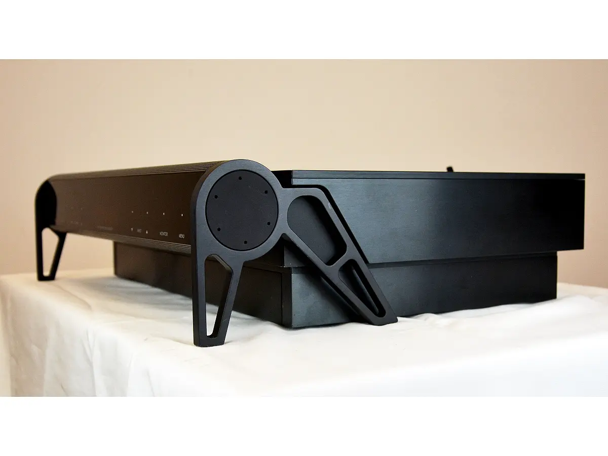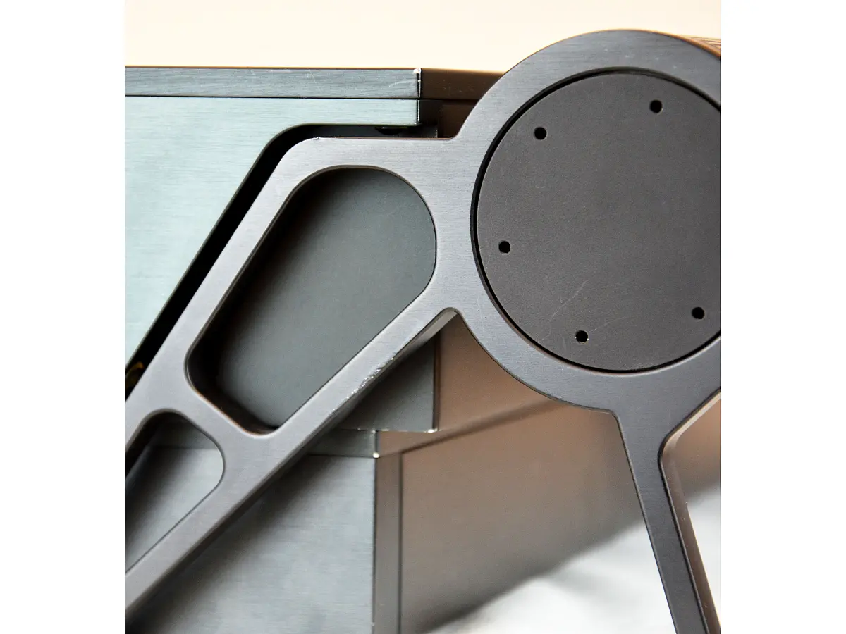 Its configuration deliberately departs from traditional layouts: the control unit is separate from the preamplifier section and connected via a dedicated cable, allowing for flexible and visually striking placement. Operation is handled through a refined metal remote control, crafted with the same aesthetic care as the main unit. This architecture not only allows greater freedom in positioning but also enables a more direct and satisfying interaction with the audio system. In addition, the device is designed to integrate into advanced home automation and multiroom systems, reflecting a modern approach that extends its appeal beyond traditional audiophiles.