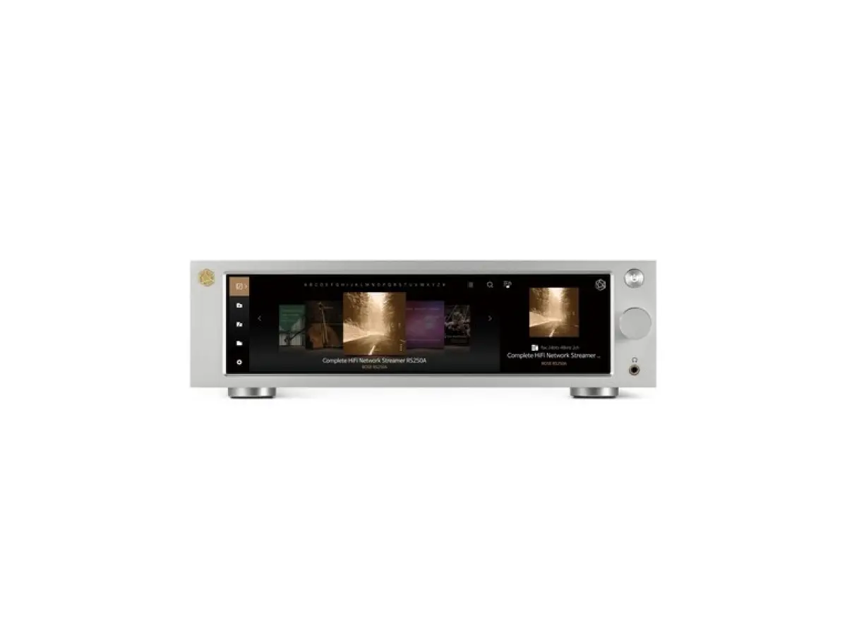 The device is designed to integrate seamlessly into an existing Hi-Fi system, acting as a reference digital source for both audio and video. Thanks to its powerful video processor, the RS250A handles Ultra HD 4K content via HDMI output, allowing playback of local or streamed files with smooth, high-quality images. This multimedia capability is complemented by a large 8.8-inch front-panel IPS MultiTouch color display, which offers a wide viewing area, high resolution, and a wide viewing angle, enabling full control of all system functions, display of album artwork and information, and video playback up to 60 fps directly on the integrated screen.
