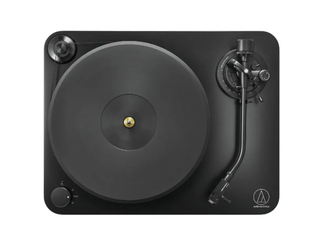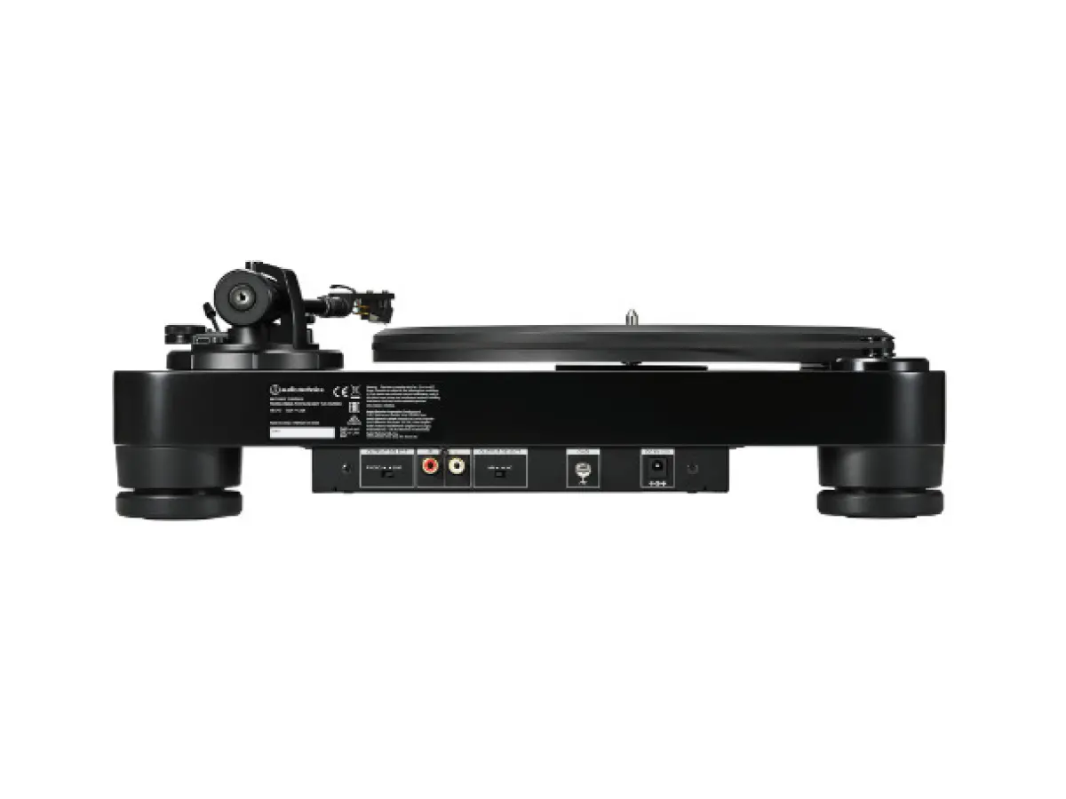 The AT-LP7X turntable is a fully manual belt-drive model that combines analog elegance with high-level performance. Its chassis is constructed from 40 mm high-density MDF and features a 20 mm acrylic platter, both designed to minimize resonance and vibrations, ensuring clean and detailed sound reproduction. The chassis geometry is precisely engineered: the positioning of the platter, spindle, and J-shaped aluminum tonearm allows accurate, distortion-free tracking, while the tonearm, inspired by classic 1960s and ’70s Audio-Technica models, incorporates a dual-axis gimbal with precision ball bearings to optimize smooth movement.