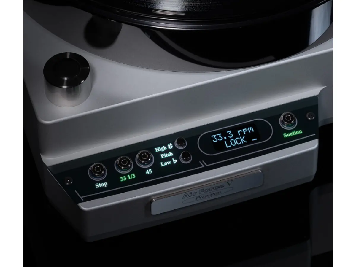 The Air Force V Premium turntable by TechDAS represents a further evolution of the Air Force design philosophy, successfully integrating all of the brand’s core technologies into a more accessible offering without compromising sonic performance. The air-based solutions that define the range allow the platter to float on an extremely thin cushion of air, mechanically isolating both the record and the rotation from external vibrations, while the vacuum hold-down system ensures perfect contact between the vinyl and the platter surface. Thanks to these technologies, analog playback achieves an exceptionally low noise floor and a level of rotational accuracy that approaches modern digital standards, resulting in a sound that is remarkably clean, stable, and free from residual noise.