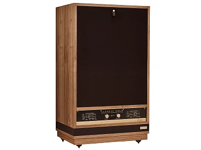 Listeners can fine-tune the speaker’s output thanks to two front-mounted controls: one adjusts the high-frequency energy between 750 Hz and 26 kHz, while the other modifies the presence range between 2.5 and 5 kHz, both with a ±3 dB range. These adjustments allow for precise adaptation to room acoustics or personal preferences, offering a level of flexibility rarely found in products of this class. The craftsmanship is evident in the natural walnut finish accented with gold detailing, while Dr. Paul Mills’ engraved signature on the front plate reflects the brand’s obsessive attention to detail and its ongoing pursuit of sonic perfection.