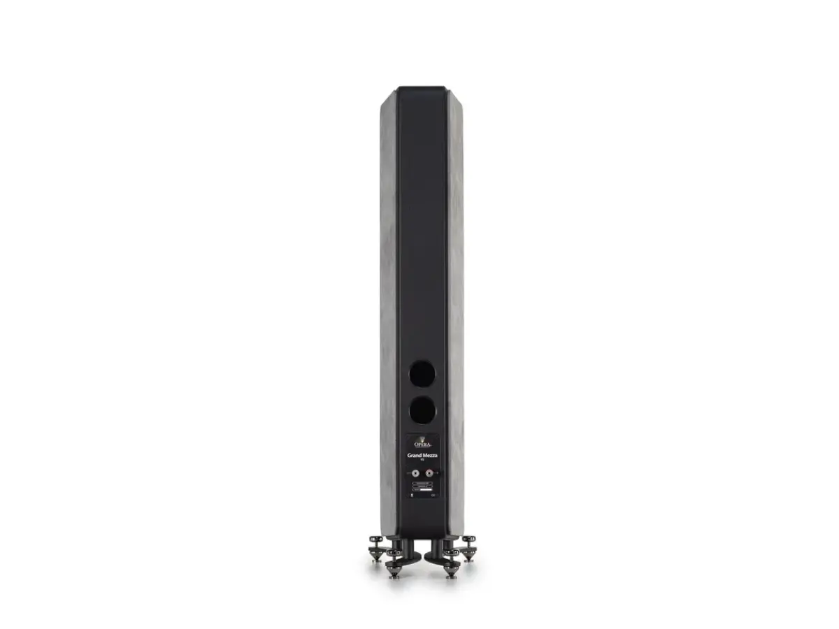 Opera Grand Mezza v2 presents itself as a sleek and elegant floorstanding loudspeaker, the slimmest model in the Classica line, designed to blend naturally into contemporary domestic environments while delivering high-level sonic performance. It is configured as a two-and-a-half-way system with a rear double resonator, engineered to achieve remarkable low-frequency extension and precise control while maintaining compact proportions and a discreet aesthetic. The balance between form and function emerges in every detail, resulting in a refined, natural, and engaging sound reproduction.