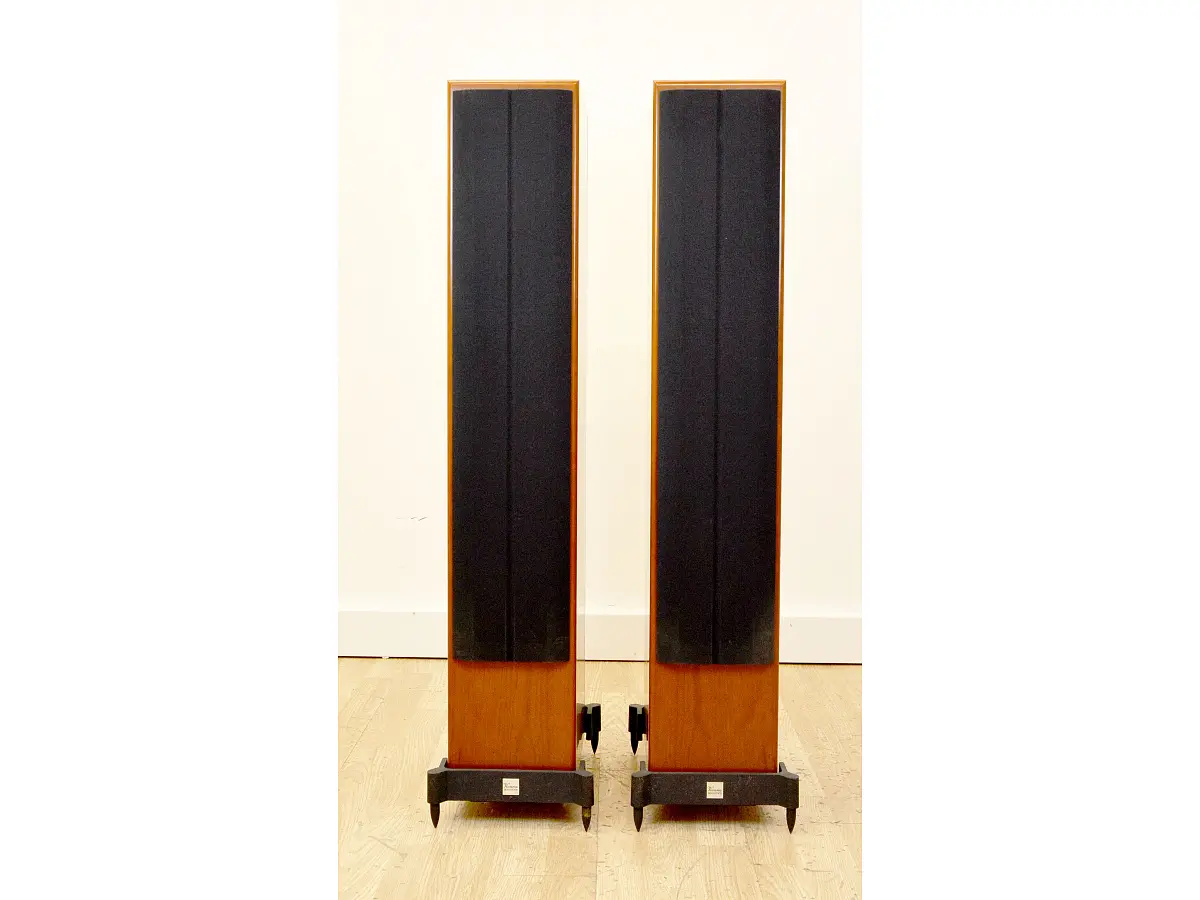 The listening experience is enhanced by metal bases and spike feet designed for isolation without being intrusive, and by cloth grilles with aluminum frames and V-shaped diffusers to control dispersion. Removing the grilles opens up the sound even more, though using them optimizes overall performance.