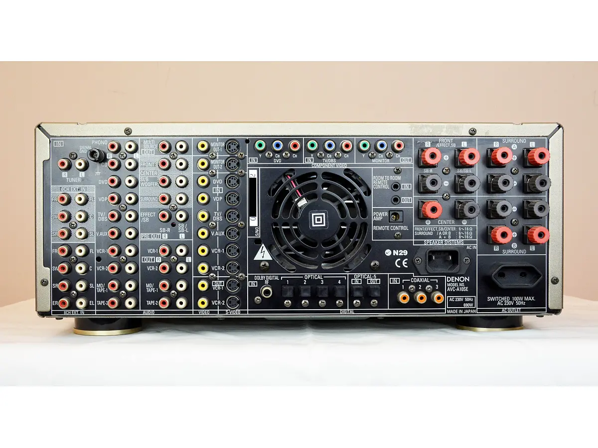 In ascolto stereofonico, l’AVC-A10SE si rivela sorprendente per dinamica, naturalezza e potenza, con un rispetto rigoroso dei timbri, un’immagine stereo stabile e un’estensione in basso profonda e controllata. Anche in configurazioni multicanale, l’energia dell’amplificatore non compromette mai l’equilibrio tonale: il grave resta pieno e definito, i medi e gli acuti aperti e fluidi, mentre la scena sonora risulta ampia e ben strutturata, con effetti surround immersivi e dialoghi perfettamente localizzati. La gestione di configurazioni 7.1 con canali posteriori e centrali aggiuntivi permette di ricreare un ambiente sonoro estremamente realistico, vicino all’esperienza di una sala cinematografica, con una distribuzione precisa e omogenea degli effetti acustici.