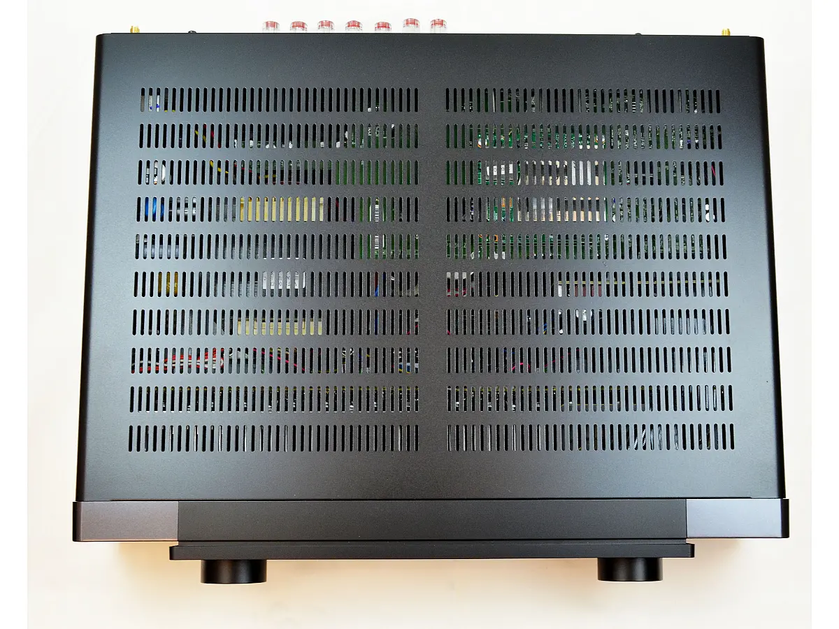 - Potenza di uscita: 50 W (8 Ω, 20 Hz–20 kHz, 0,08%, 2 canali pilotati); 70 W (6 Ω, 1 kHz, 0,7%, 2 canali pilotati); 100 W (6 Ω, 1 kHz, 10%, 1 canale pilotato)