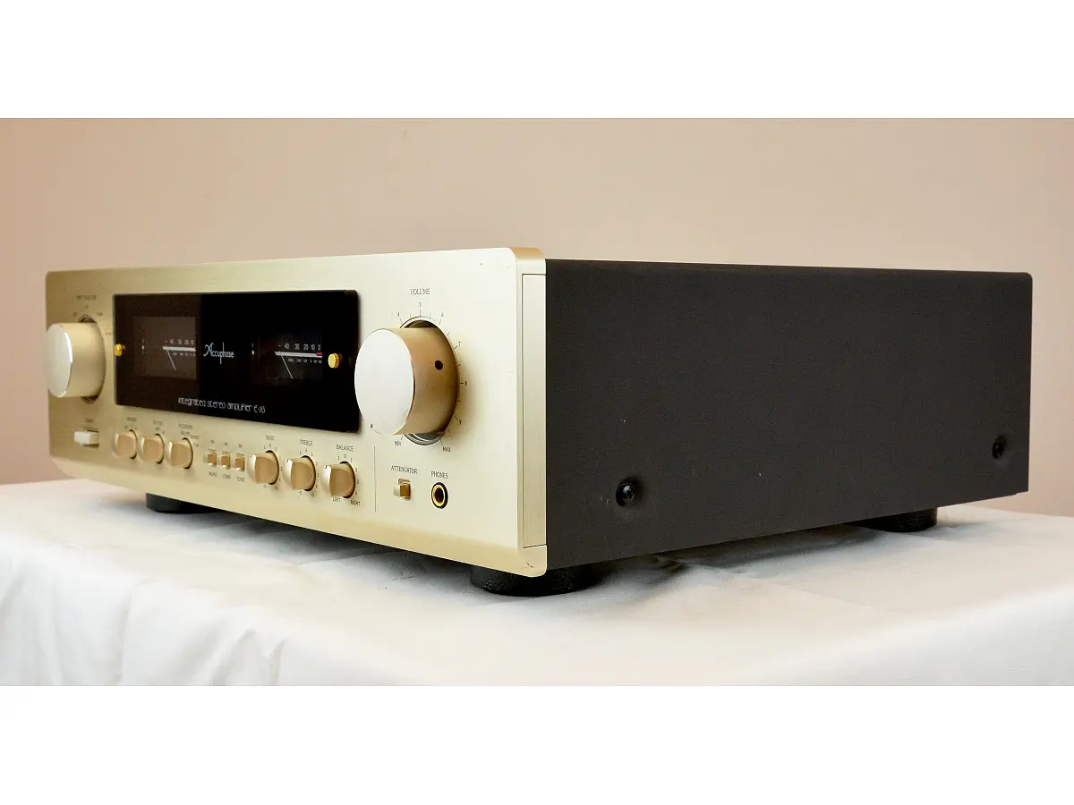 La versatilità è ulteriormente ampliata dall’opzione di schede aggiuntive per ingressi digitali o phono ad alta qualità, dalla presenza di doppi morsetti per diffusori in grado di accogliere cavi di grande sezione, dai misuratori analogici di picco e dal controllo volume di precisione. L’ampio trasformatore da 400 VA, i grandi condensatori da 22.000 µF e i piedini smorzanti in ghisa ad alto carbonio assicurano stabilità, isolamento e una riproduzione sonora ricca, dettagliata e dinamica anche ai livelli più bassi. Ogni componente è selezionato con estrema cura, facendo dell’Accuphase E213 un amplificatore integrato che si distingue per musicalità, potenza e fedeltà, offrendo agli appassionati di musica un’esperienza sonora pura e coinvolgente, degna dei migliori sistemi hi-fi.