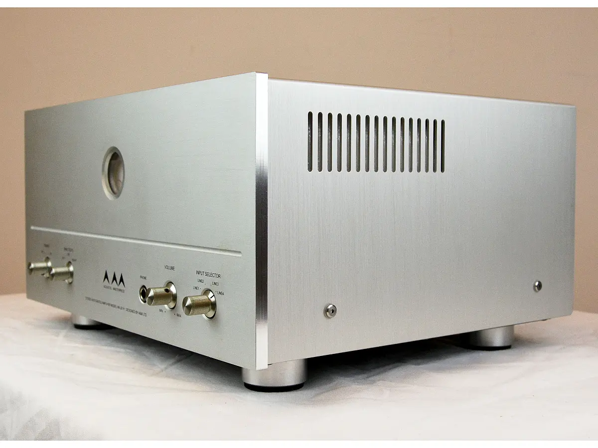 Dal punto di vista estetico, l’amplificatore presenta pannelli frontale e posteriore in alluminio estruso spesso, abbinati a un rivestimento in legno massello, che conferisce eleganza e solidità. Il design prevede inoltre un comodo metro di bilanciamento del bias e un’uscita cuffie, permettendo un ascolto personale senza compromettere la qualità del suono. Gli ingressi sono compatibili con sorgenti moderne come CD e DVD, mentre il selettore e le regolazioni sono studiati per un utilizzo intuitivo. Ogni dettaglio, dal cablaggio alla scelta dei materiali, riflette la filosofia AIR-TIGHT di coniugare tecnologia valvolare, musicalità e costruzione artigianale di alto livello.