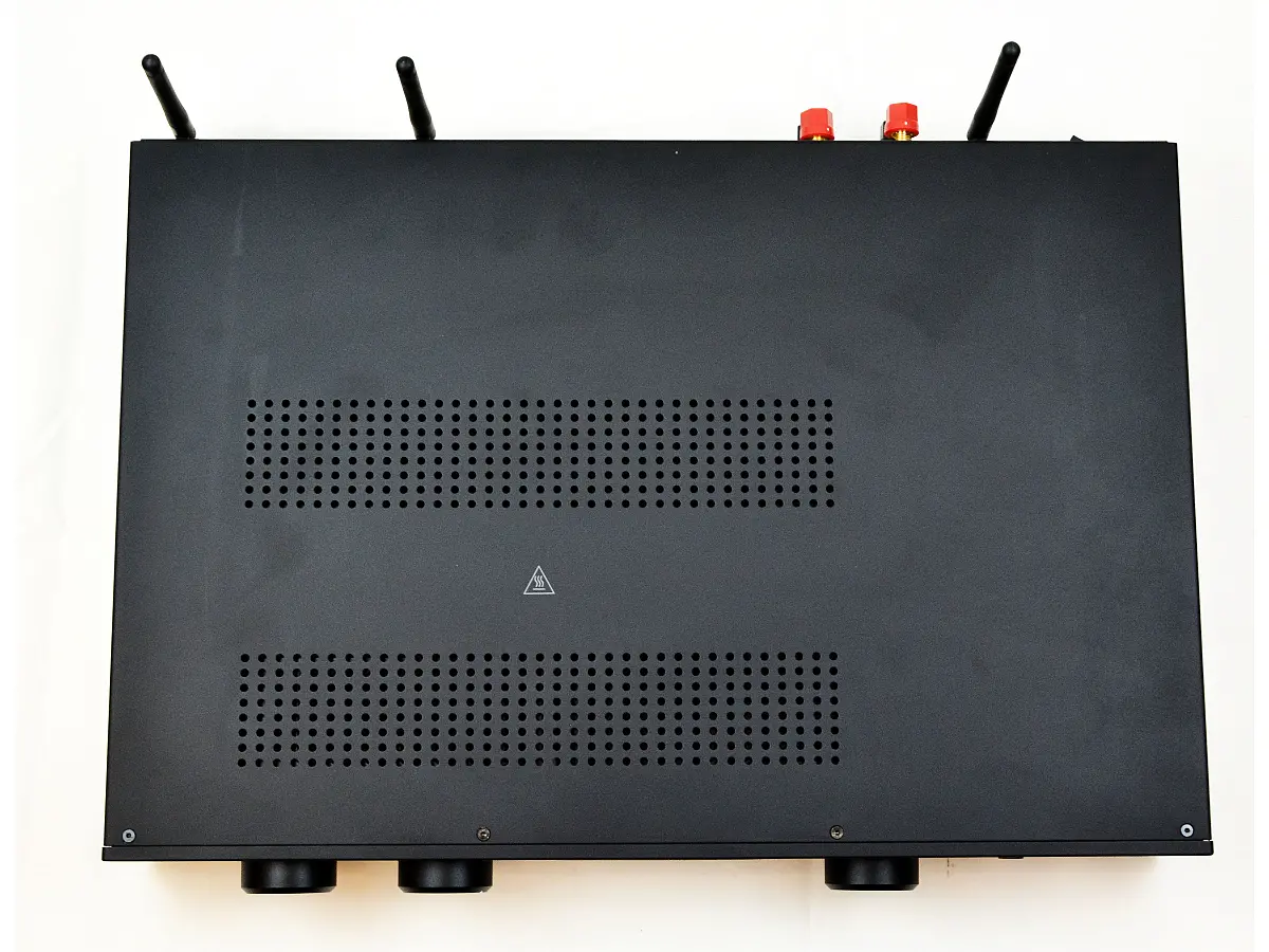L’amplificazione è in classe AB e offre 50W per canale su 8 Ohm. Il circuito di uscita utilizza un feedback complementare (CFB) e un trasformatore toroidale da 200VA, supportato da quattro condensatori da 15000µF, per un totale di 60000µF, garantendo stabilità e dinamica. L’apparecchio può funzionare come amplificatore integrato, preamplificatore o finale di potenza. È presente anche uno stadio phono per testine MM, con circuito JFET ed equalizzazione RIAA, e un amplificatore per cuffie dedicato con feedback di corrente.