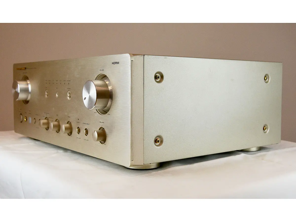 Il Marantz PM7200 è un amplificatore potente e ben costruito, capace di erogare 95 watt per canale su 8 ohm e fino a 155 watt su 4 ohm, con la possibilità di operare in 25 watt puri in classe A. La sezione di uscita è completamente discreta e protetta da schermatura in rame, grazie alla tecnologia HDAM (High Definition Amplifier Module), che assicura un’elevata definizione e linearità del segnale. L’uso di componenti di qualità premium e di una costruzione accurata garantisce una riproduzione sonora ricca, dettagliata e affidabile.