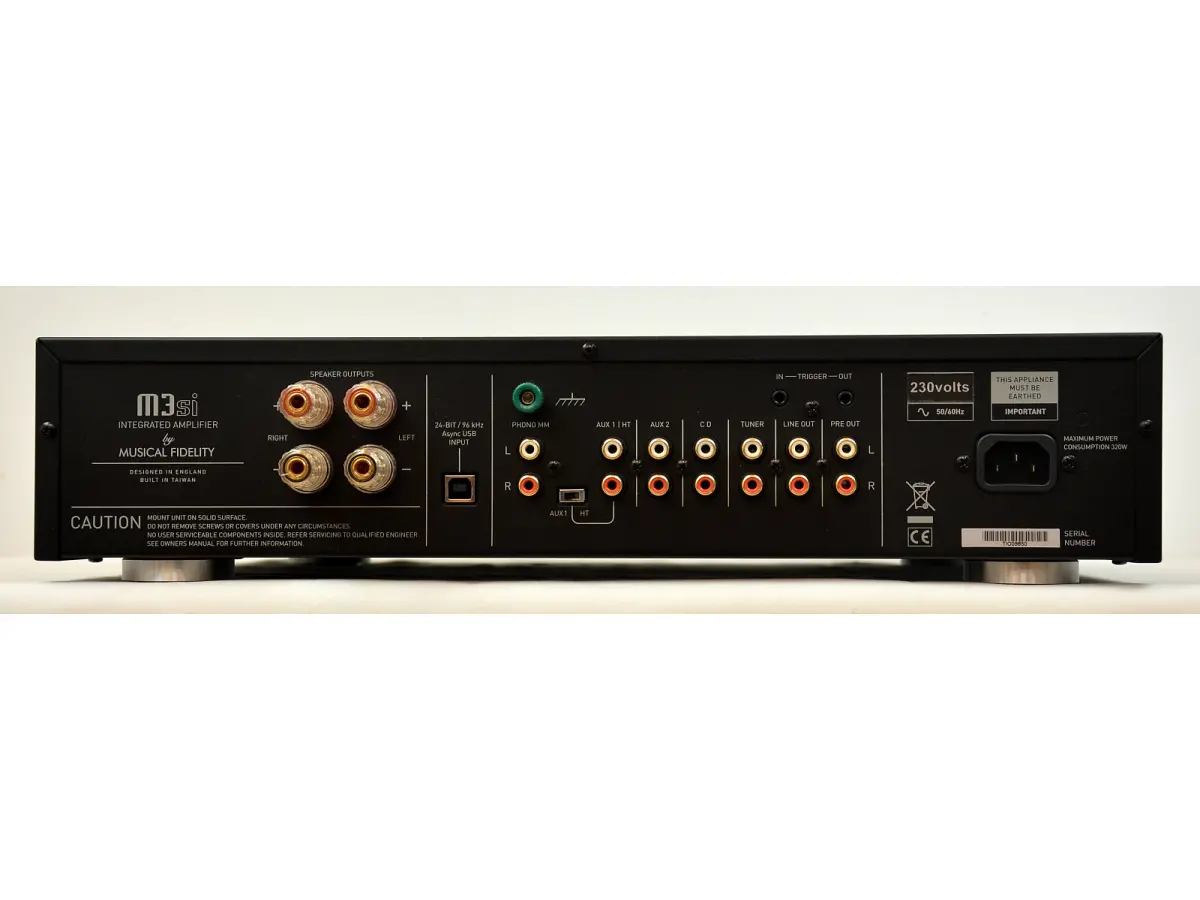 All’ascolto l’M3si restituisce un timbro equilibrato e naturale, con alti raffinati che non affaticano e una gamma medio-bassa corposa, ben definita e dinamicamente controllata. La sezione digitale si comporta come un vero e proprio hub musicale, grazie al chip Texas Instruments che offre una riproduzione dettagliata e ariosa, capace di aprire la scena sonora in profondità e in ampiezza. Anche il pre-phono integrato sorprende per silenziosità e musicalità, valorizzando le testine MM con un suono pieno, preciso e privo di colorazioni indesiderate. L’amplificatore si dimostra estremamente versatile e semplice da integrare in qualsiasi sistema: accoglie ingressi linea, phono, USB e un bypass home theater, mentre le connessioni per i diffusori supportano ogni tipologia di terminazione. Le dimensioni contenute e la costruzione solida facilitano il posizionamento, mentre il telecomando permette un utilizzo immediato e intuitivo. La cura estetica segue la filosofia storica di Musical Fidelity, con un design sobrio ed elegante che privilegia la funzionalità e si inserisce con discrezione in qualsiasi ambiente. L’M3si si presenta così come un amplificatore che onora la tradizione inglese, aggiornandola con sensibilità contemporanea e offrendo un equilibrio convincente tra musicalità, potenza e tecnologia.