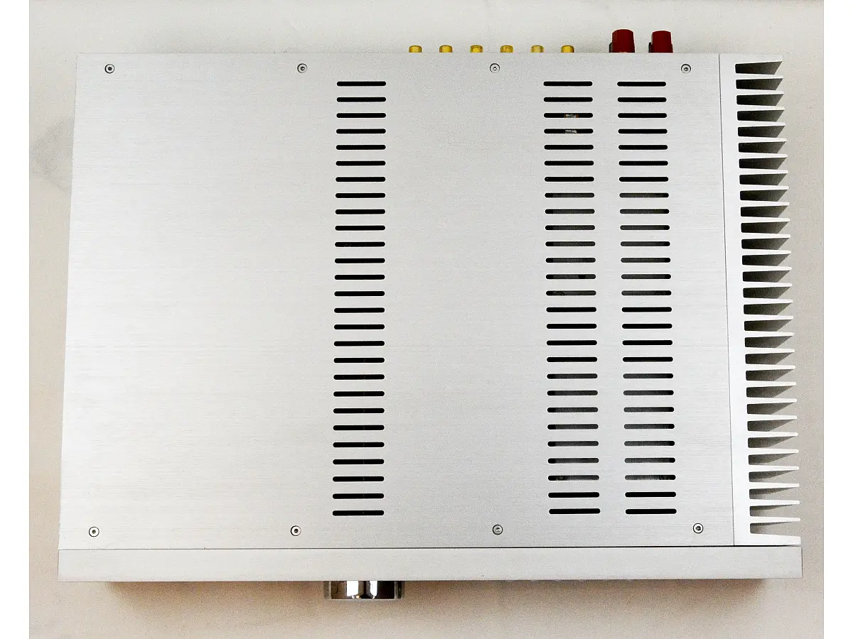 Il telaio, interamente in alluminio, racchiude un progetto attentamente studiato: l’alimentazione è affidata a un trasformatore schermato, il filtraggio è dedicato a ciascun canale e la sezione di pre-amplificazione è anch’essa schermata, riducendo al minimo interferenze e disturbi. Il cablaggio interno è ordinato e minimale, pensato per ottimizzare la trasparenza e la qualità del segnale.