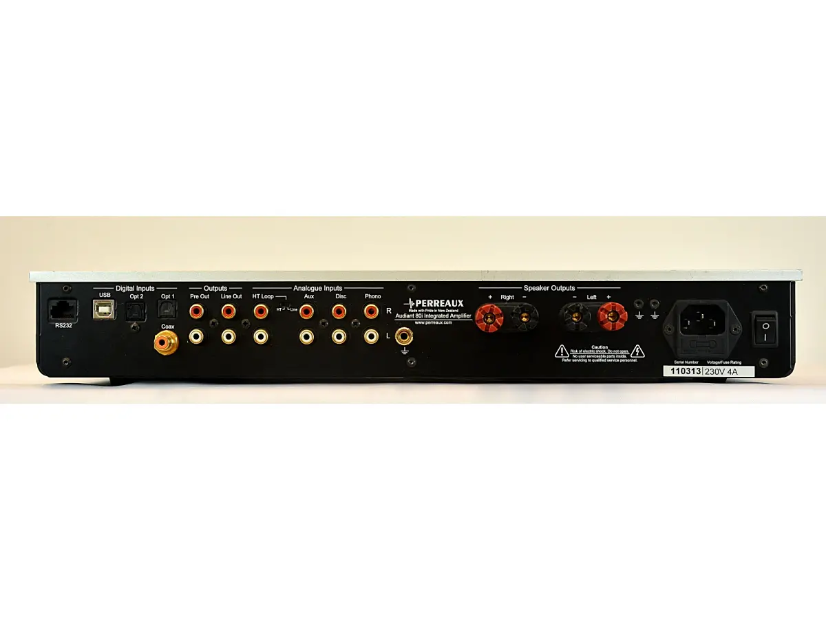 In aggiunta, l'80i è equipaggiato con un modulo phono Moving Magnet (MM) di alta qualità per il collegamento del giradischi, un elegante pannello di controllo touch retroilluminato, controllo remoto completo tramite infrarossi (IR) e una funzione di bypass per il collegamento a sistemi di Home Theatre Surround Sound. La sua costruzione robusta e potente lo rende un dispositivo durevole, progettato per durare una vita intera.