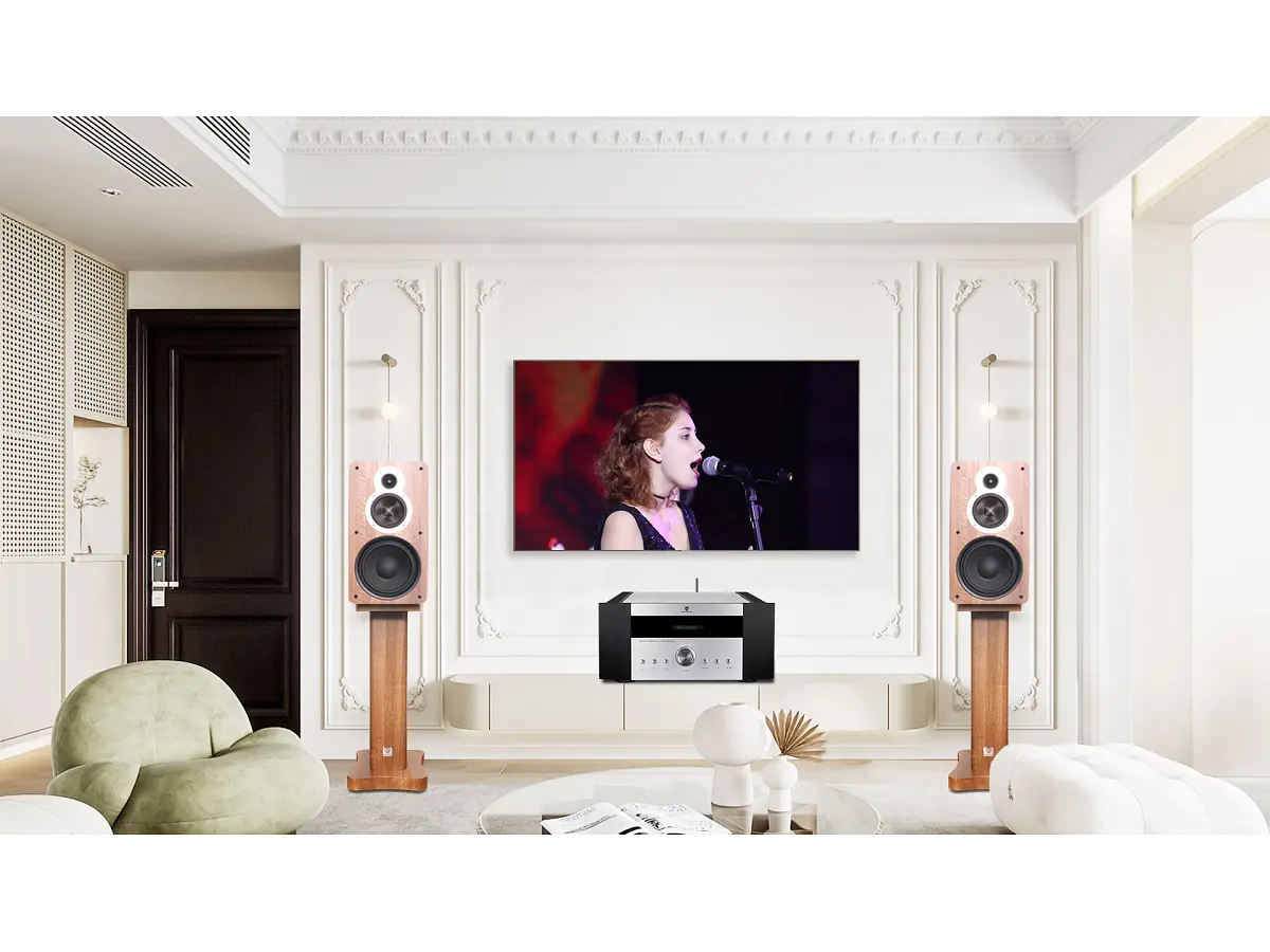 Dal punto di vista funzionale, l’AD-99D offre un’ampia gamma di ingressi e connessioni. Supporta PC USB-Audio, HDMI ARC per collegamento diretto alla TV, ingressi coassiali a tre vie, ingresso ottico singolo, ingressi analogici a tre vie e uscita subwoofer dedicata, permettendo configurazioni 2.1 per una resa sonora più completa. La compatibilità con dischi USB fino a 128 GB e schede TF, insieme al supporto per i formati APE, FLAC, WAV, MP3 e WMA, lo rende estremamente versatile. L’amplificatore integra anche la connessione Bluetooth wireless ad alta velocità e bassa latenza, garantendo la trasmissione del segnale senza ritardi e con elevata stabilità.