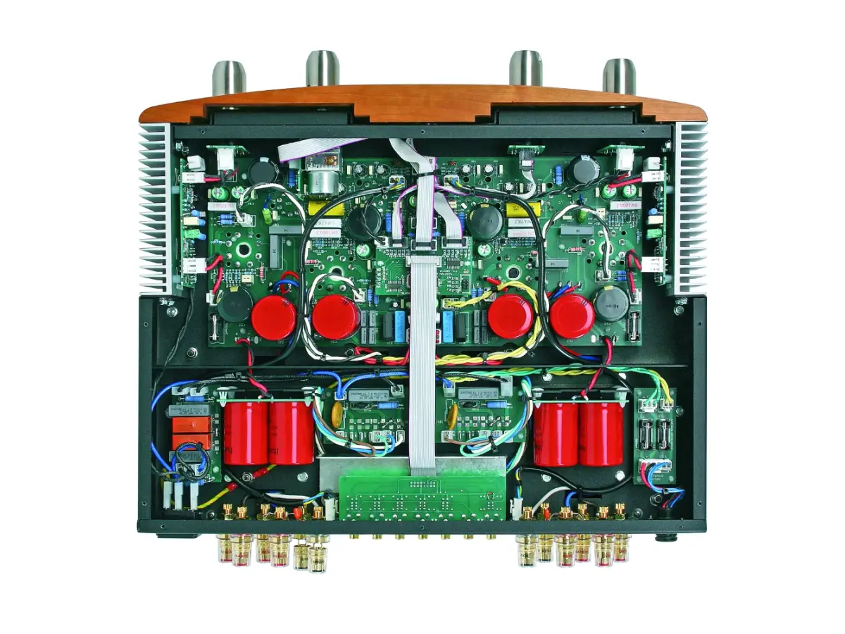 La sezione di preamplificazione e pilotaggio si basa su triodi ECC82 ed ECC83 collegati in parallelo e polarizzati, con correnti continue regolate da un circuito simile a un diodo zener, per massimizzare linearità e rapporto segnale-rumore. L’alimentazione dual-mono utilizza due trasformatori toroidali indipendenti, mentre le valvole finali KT88 lavorano in configurazione single-ended parallela ultra lineare grazie a trasformatori di uscita ottimizzati. Il controllo digitale della selezione degli ingressi e del volume è gestito tramite microprocessore e telecomando IR, mentre la regolazione analogica del volume avviene tramite potenziometro motorizzato ALPS RK27 stereo di alta qualità.