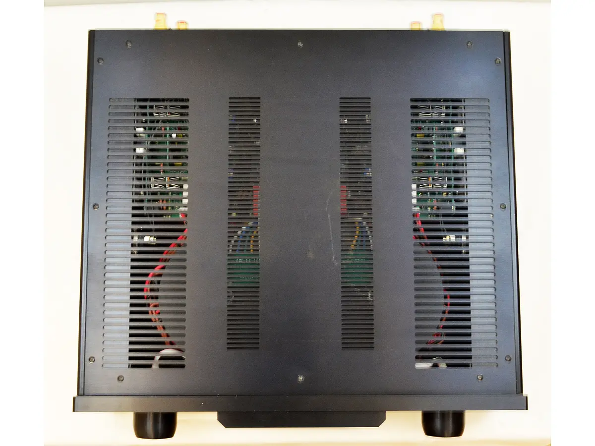 Una delle innovazioni più significative riguarda lo stadio di potenza, che sostituisce i MOSFET con transistor bipolari (BJT) progettati specificamente per l’uso audio. La combinazione di MOSFET di media potenza, come stadio driver, con una coppia di BJT ad alta corrente in configurazione mista npn-pnp, garantisce grande dinamica, ampia larghezza di banda e controllo preciso dei diffusori. L’architettura dello stadio di potenza è studiata per ridurre la distorsione dovuta a eventuali asimmetrie tra transistor npn e pnp, adottando una topologia non convenzionale che bilancia perfettamente i rami positivo e negativo.