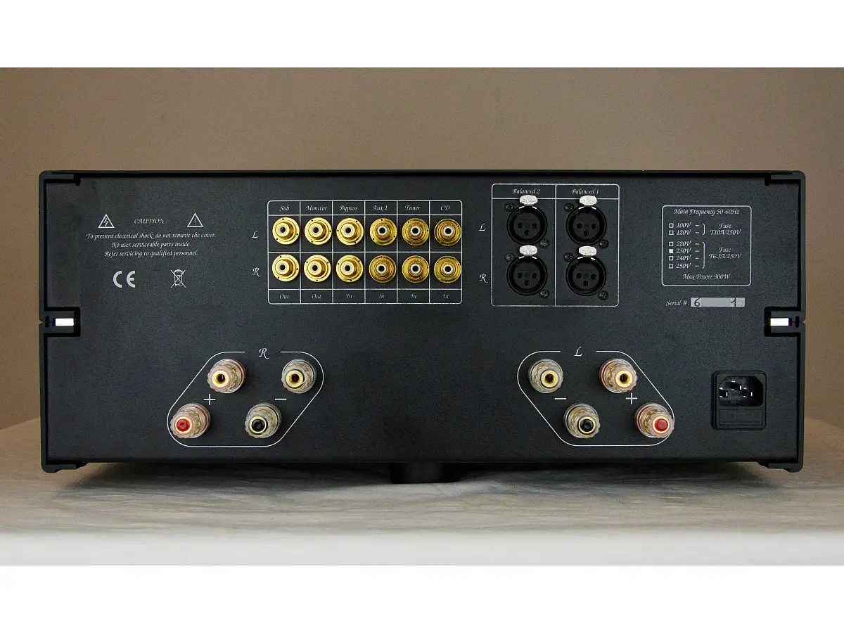 Il design circuitale adotta solo due stadi attivi, a differenza dei tre dell’ammiraglia, perseguendo la massima semplicità strutturale per ridurre al minimo la distorsione e mantenere la naturalezza del suono. La sezione del preamplificatore è completamente passiva e integra un potenziometro ALPS a basso rumore, capace di garantire un controllo del volume preciso e un bilanciamento ottimale dei canali. Gli ingressi sono commutati tramite relè meccanici miniaturizzati e schermati, posizionati in prossimità delle connessioni per minimizzare diafonia e interferenze.