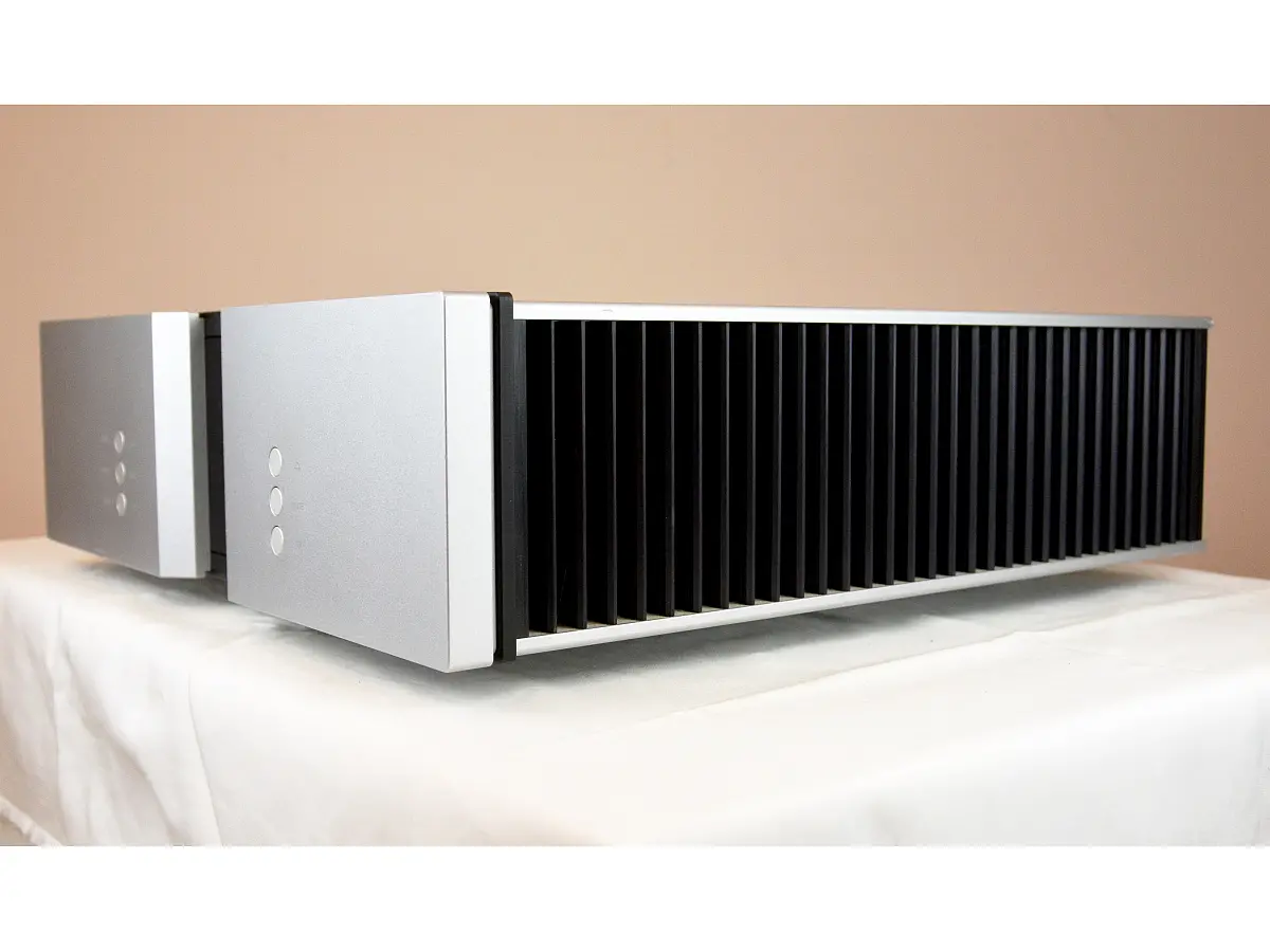 La costruzione del telaio e la qualità delle finiture riflettono l’attenzione tipica del marchio danese, con una struttura massiccia e imponente che trasmette solidità e precisione. Il dispositivo si distingue anche per un peso considerevole e per un design frontale essenziale ma estremamente curato, caratterizzato da linee solide, superfici pulite e un sistema di dissipazione del calore integrato che diventa parte integrante dell’estetica. L’impressione complessiva è quella di un apparecchio costruito senza compromessi, pensato per durare nel tempo e per garantire stabilità operativa anche in condizioni di utilizzo impegnative.