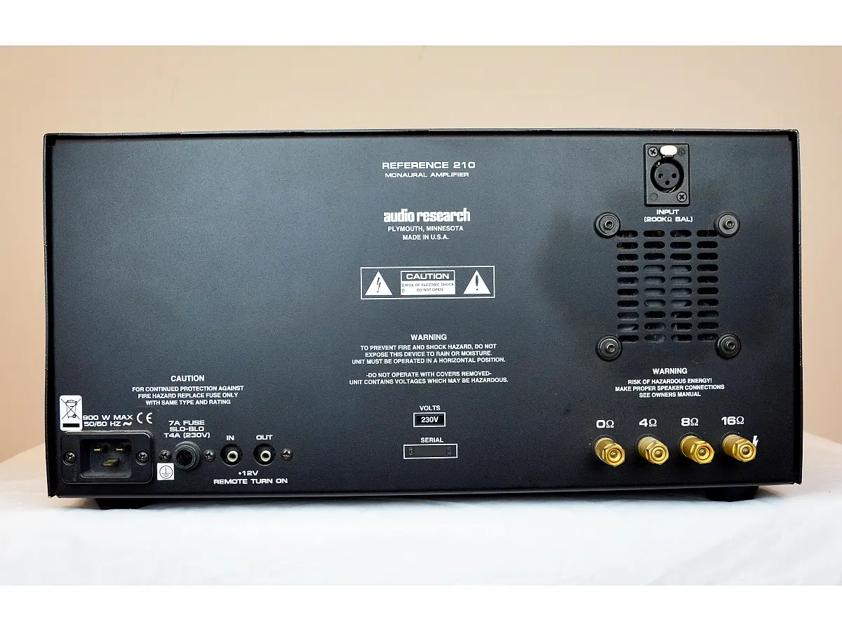 La potenza continua erogata è di 210 watt. Come il REF610T, il REF210 utilizza un circuito push-pull a valvole completamente bilanciato, in modalità parzialmente accoppiata al catodo, con tre coppie di valvole di uscita 6550C perfettamente abbinate. Due valvole driver 6550C controllano ciascuna tre valvole di uscita in sincronia. Lo stadio di ingresso impiega JFET a accoppiamento diretto, seguiti da uno stadio amplificatore a valvola 6N1P. Il sistema di polarizzazione è semplice, con soli due punti di regolazione.