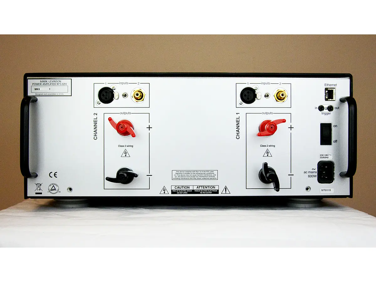 Il Nº532H è costruito su un telaio robusto, isolato elettricamente per minimizzare le interferenze, e certificato CE per l’utilizzo in Europa. Come in tutti i modelli Mark Levinson, il frontale ospita un unico pulsante di accensione in standby, accompagnato da un LED di stato che ne indica il funzionamento. Nonostante l’aspetto discreto e privo di ostentazioni, il suo comportamento sonoro rivela un’anima di straordinaria energia e raffinatezza. La sua gamma bassa è profonda e controllata, la scena sonora ampia e tridimensionale, gli acuti limpidi e precisi, i medi definiti e ricchi di corpo.