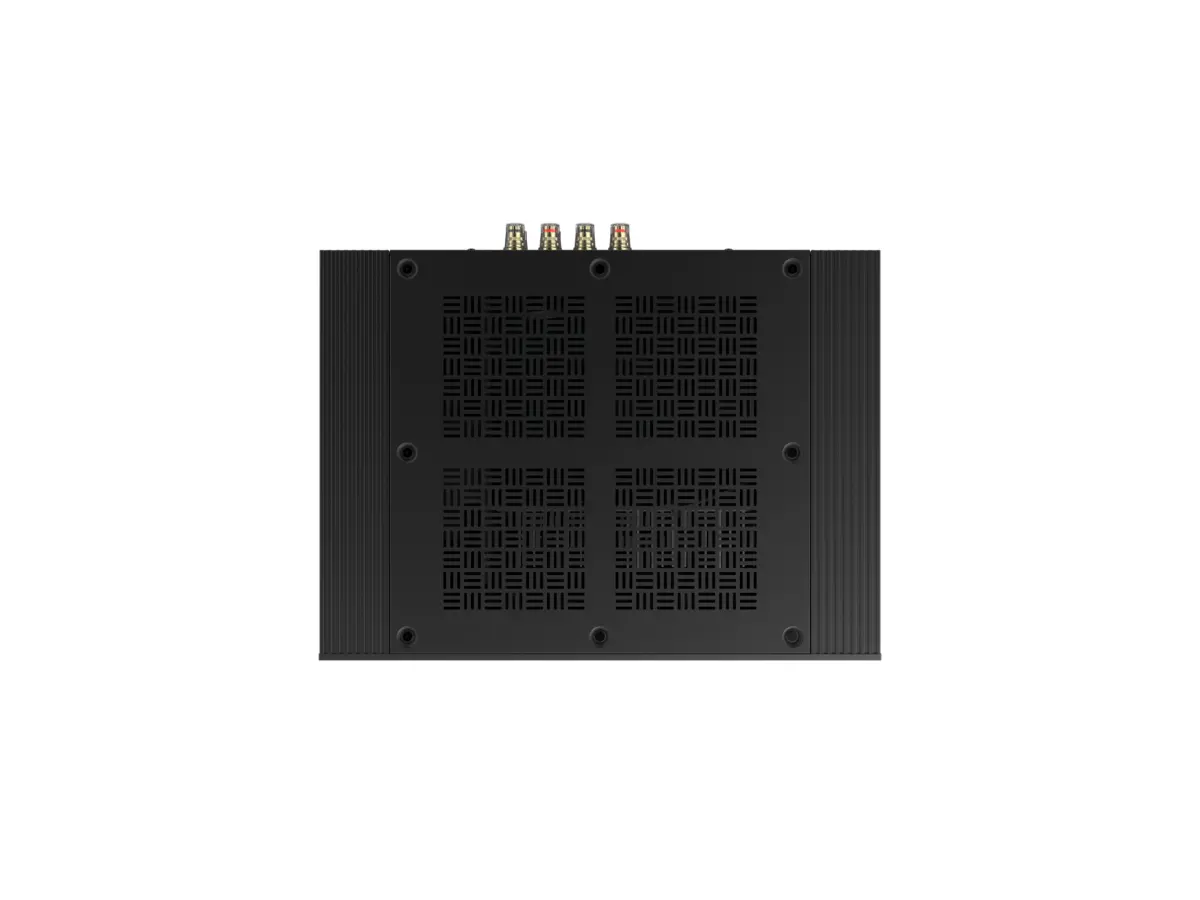 L’M-80 è costruito con componenti di altissima qualità, tra cui un’alimentazione ad alta corrente progettata su misura, condensatori da 10.000 µF realizzati esclusivamente per Onkyo, terminali hi-fi sia per ingresso che per uscita, barre di rame e un pannello frontale robusto e antivibrazione. Il dissipatore in alluminio estruso sopprime le vibrazioni, mentre la scocca, composta da due pannelli laterali in alluminio e un pannello superiore in acciaio, aumenta la rigidità e la resistenza sismica, migliorando ulteriormente la qualità sonora complessiva.