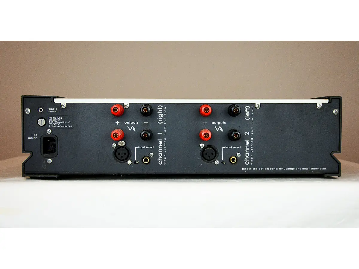 Ogni canale è configurabile per ricevere segnali bilanciati o sbilanciati, offrendo così la massima flessibilità e compatibilità con diversi preamplificatori. L’uso di connessioni bilanciate permette di ridurre sensibilmente il rumore elettrico e le interferenze, migliorando ulteriormente la purezza del segnale. Lo stadio di uscita, estremamente robusto, impiega otto transistor da 150 watt accuratamente selezionati e abbinati per garantire uniformità di carico, stabilità e durata nel tempo.