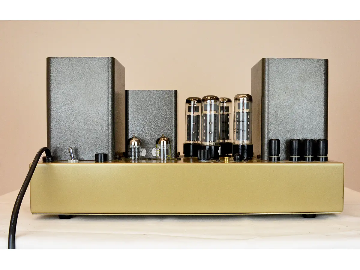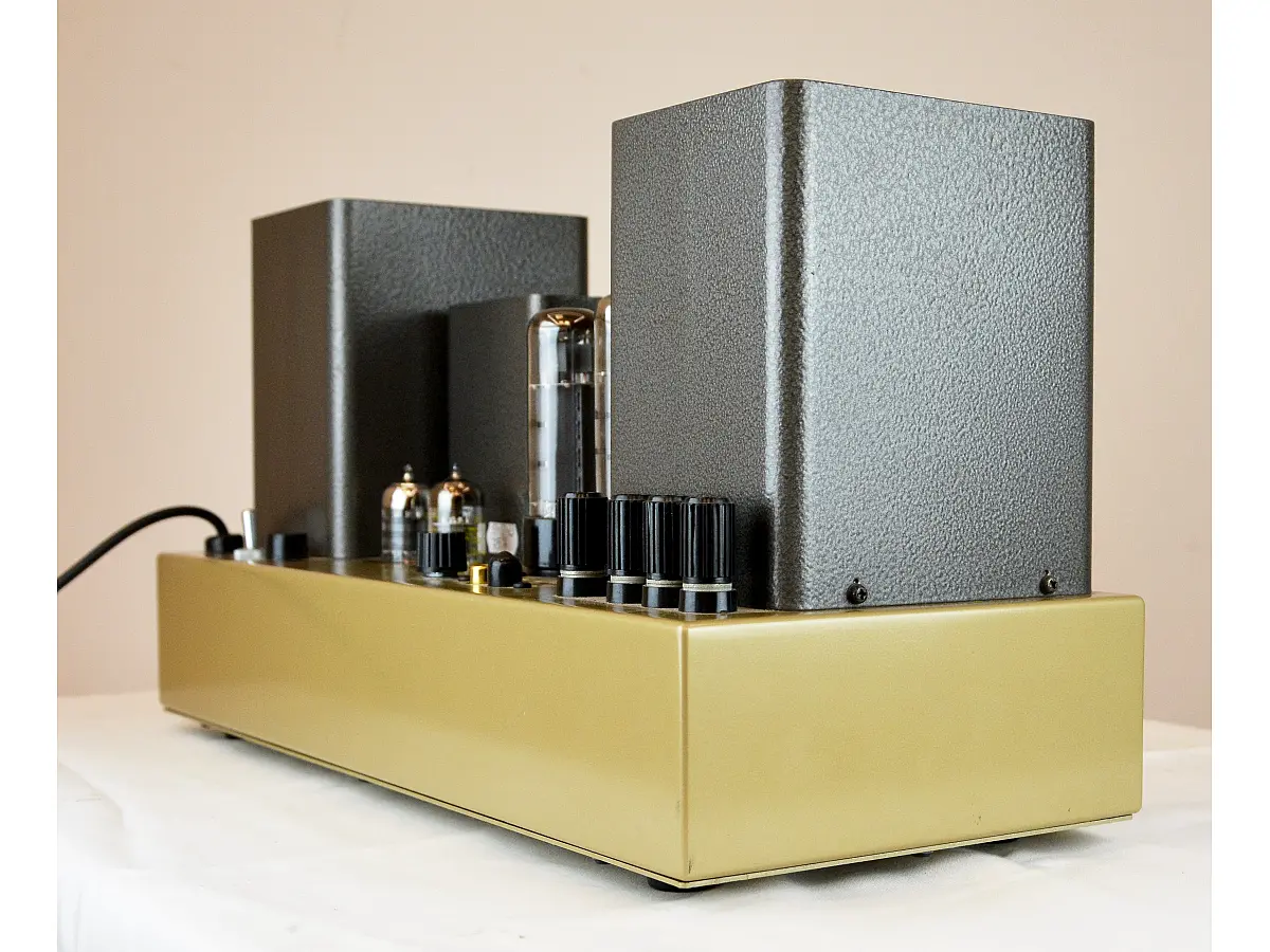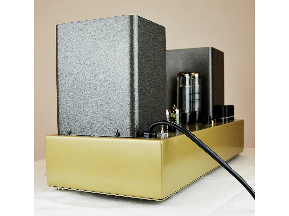 Rispetto al modello precedente, il collegamento in parallelo delle valvole del primo stadio con ECC83/12AX7 e un livello di NFB (negative feedback) impostato a 14 dB migliorano il rapporto segnale/rumore e la stabilità complessiva dell’amplificatore. I trasformatori di uscita sono progettati per mantenere quasi costante l’induttanza primaria, garantendo caratteristiche stabili anche in caso di lievi differenze tra le due valvole del push-pull. La sezione di alimentazione utilizza una bobina di choke ad alta induttanza per ottenere un’uscita DC pulita e costante, mentre la resistenza interna del trasformatore di alimentazione e della choke è minimizzata per mantenere stabile la tensione su tutti i canali.