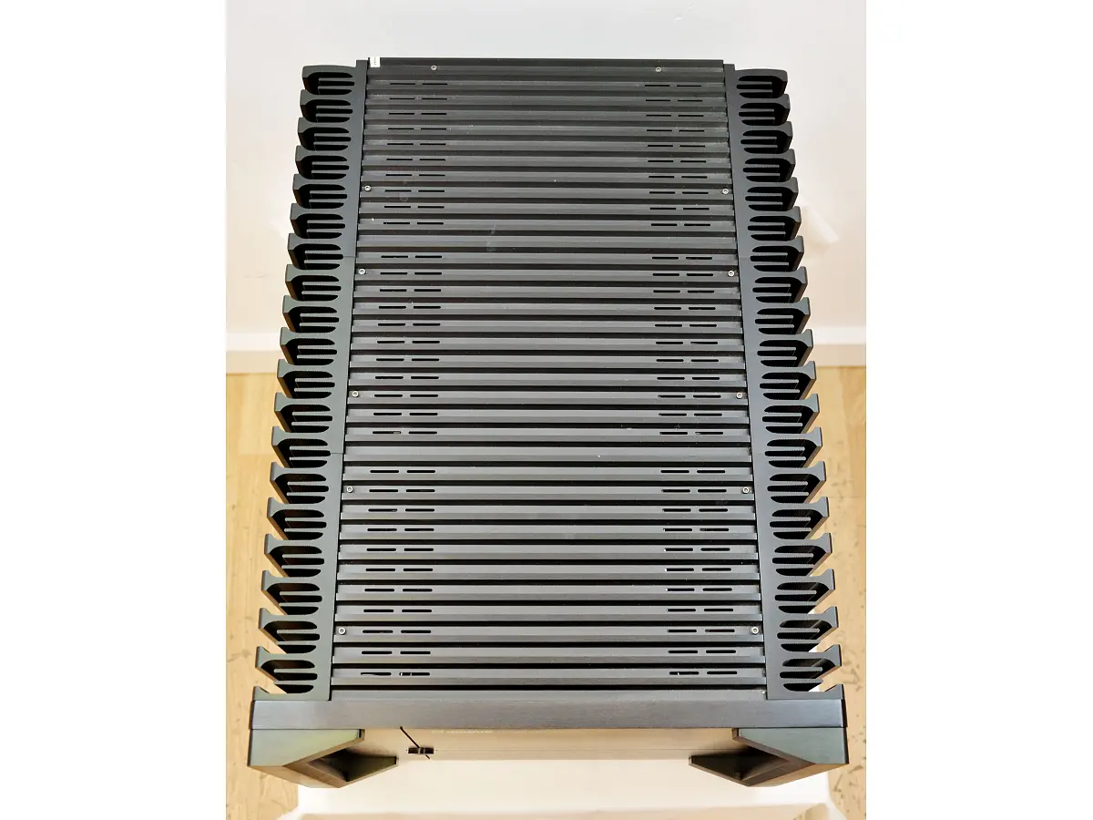 Il progetto interno dello PA-20 è concepito per garantire il massimo controllo e linearità: lo stadio di guadagno di tensione utilizza un trasformatore di ingresso appositamente realizzato per massimizzare la qualità del segnale, mentre lo stadio di uscita è costituito da ben 48 transistor ad alta potenza montati in parallelo, capaci di erogare una corrente notevole in grado di pilotare con autorevolezza qualsiasi tipo di diffusore, anche quelli più impegnativi. La sezione di alimentazione si avvale di un doppio trasformatore toroidale, supportato da una vasta rete di condensatori di filtraggio che forniscono energia stabile e immediata per riprodurre con precisione anche i passaggi musicali più complessi e dinamici.