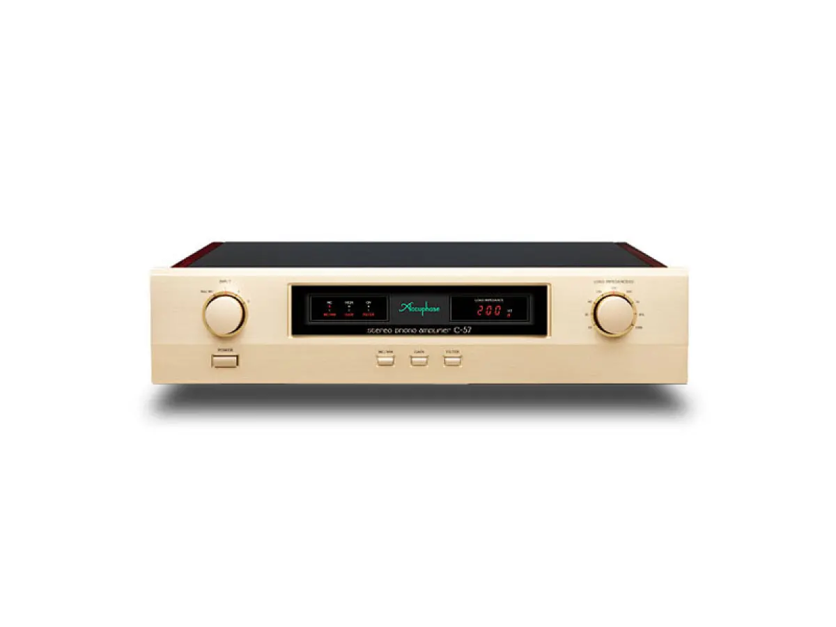 Il C-57 permette, se abbinato agli attuali amplificatori di potenza Accuphase, di creare un sistema a trasmissione totalmente bilanciata. L’amplificatore di testa MC è dotato della tecnologia ANCC, che migliora sensibilmente le prestazioni in termini di distorsione e rumore, esaltando la purezza del segnale e permettendo di percepire ogni dettaglio della riproduzione analogica. L’apparecchio si caratterizza per la raffinata estetica: la piastra superiore in alluminio con finitura “hair-line” si abbina armoniosamente ai pannelli laterali in legno naturale, creando un’atmosfera elegante e sofisticata.