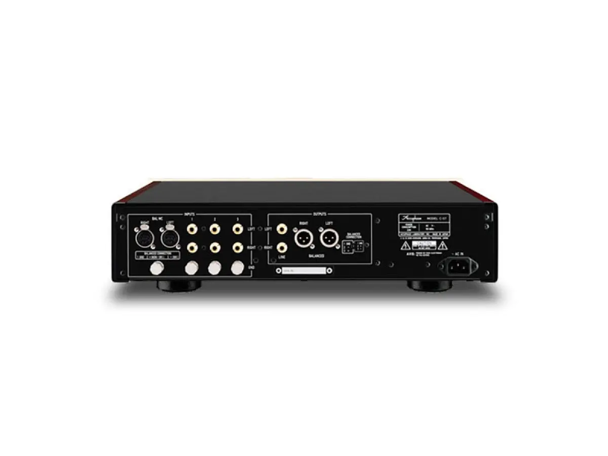 I nuovi selettori rotativi per l’ingresso e per l’impedenza di carico combinano componenti selezionati con cura, offrendo una sensazione operativa precisa e piacevole. Per la connessione MC, il C-57 introduce un’impostazione da 60Ω, mentre l’impedenza di carico può essere scelta tra sette tipi per MC e tre tipi per MM, con il valore selezionato sempre visibile sul display. Dispone di un ingresso bilanciato dedicato alle testine MC e di tre ingressi di linea, con la possibilità di memorizzare le impostazioni individuali di ciascun ingresso.