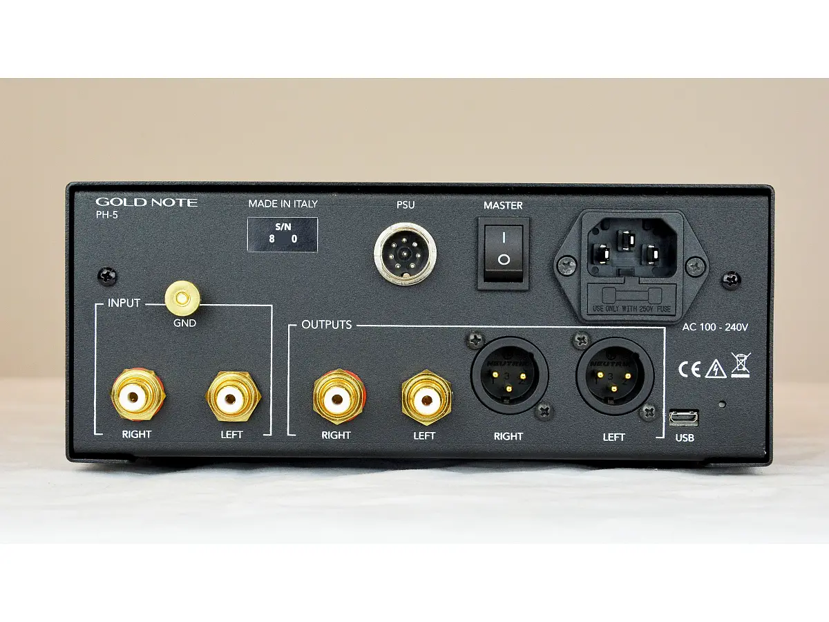 Il PH-5 rappresenta l’ultima evoluzione dei pre phono targati Gold Note, concepito per offrire le performance e la qualità che hanno reso celebri i modelli PH-10 e PH-1000, ma con un approccio più accessibile e con tutte le innovazioni distintive del marchio. È progettato per adattarsi a qualsiasi sistema analogico, grazie all’ingresso RCA che supporta sia testine MM che MC, alle curve di equalizzazione selezionabili RIAA, Decca London e American Columbia, tutte disponibili anche nella versione “Enhanced”, e alla regolazione di guadagno e carico che assicurano la massima flessibilità e versatilità.