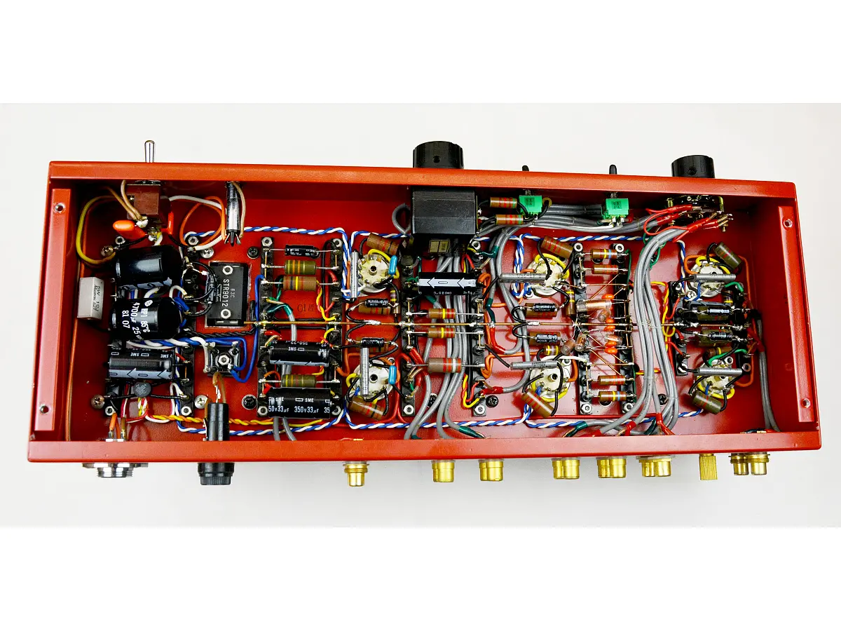 La costruzione interna è un esempio di cura e minimalismo funzionale: cablaggi in aria, percorsi del segnale ridotti al minimo, materiali selezionati e componentistica di altissima qualità, con l’obiettivo di preservare la coerenza del segnale e ridurre al minimo qualsiasi interferenza o distorsione. Ogni elemento dell’IT-1 riflette la convinzione, tipica della scuola giapponese più purista, che la qualità sonora derivi dall’integrità elettrica e meccanica del progetto, piuttosto che dalla complessità dei circuiti.