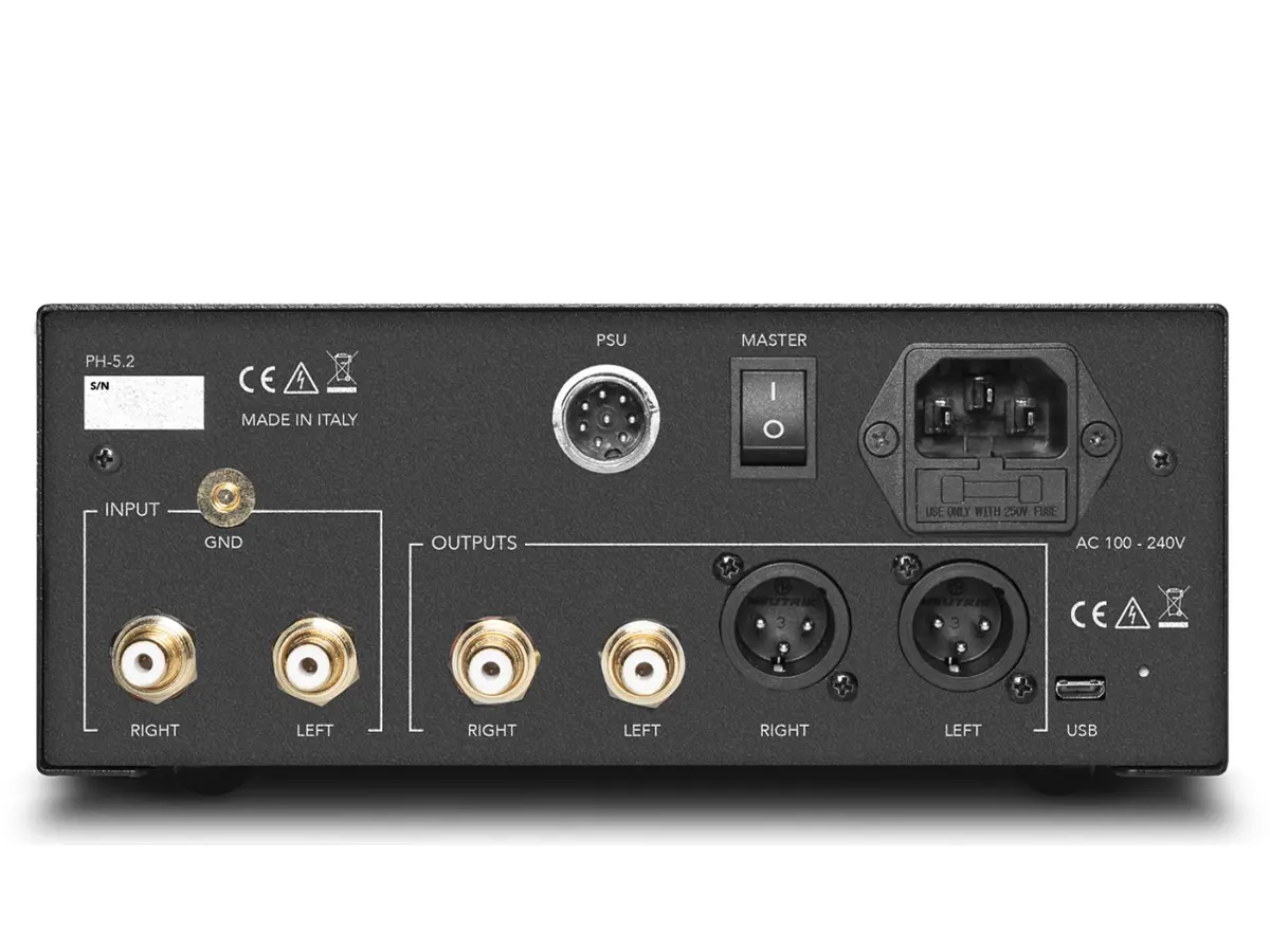 L’estetica del PH-5.2 si rinnova con la Linea 5.2, combinando eleganza e dettagli accattivanti a prestazioni elevate. Il telaio in alluminio sabbiato anodizzato nero è progettato per minimizzare l’interazione con i campi magnetici, creando un ambiente elettrico e meccanico stabile, riducendo il rumore di fondo e migliorando la naturalezza e il dettaglio dell’ascolto. La nuova alimentazione potenziata assicura maggiore controllo dinamico, una gamma alta più pulita e un suono rilassato ma autorevole, capace di mantenere coerenza anche nei passaggi musicali più complessi.