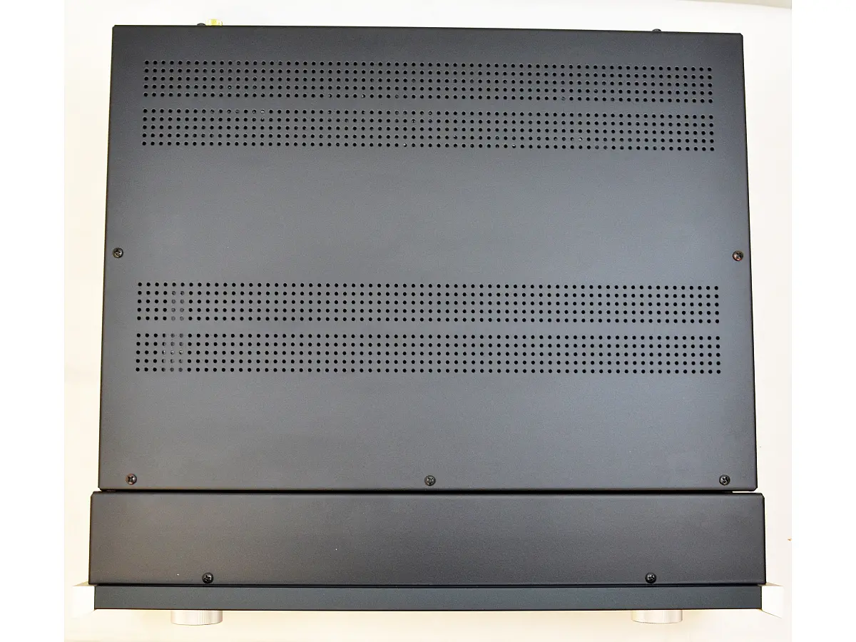 La funzione Home Theatre PassThru consente un’integrazione fluida in sistemi multicanale, mantenendo inalterata la qualità della riproduzione stereo. Le connessioni comprendono due uscite bilanciate variabili, due uscite sbilanciate variabili e un’uscita sbilanciata fissa, facilitando configurazioni in bi-amplificazione senza il rischio di disattivare involontariamente determinate gamme di frequenza. I controlli di tono per bassi e alti, escludibili, permettono un’ulteriore personalizzazione dell’ascolto.