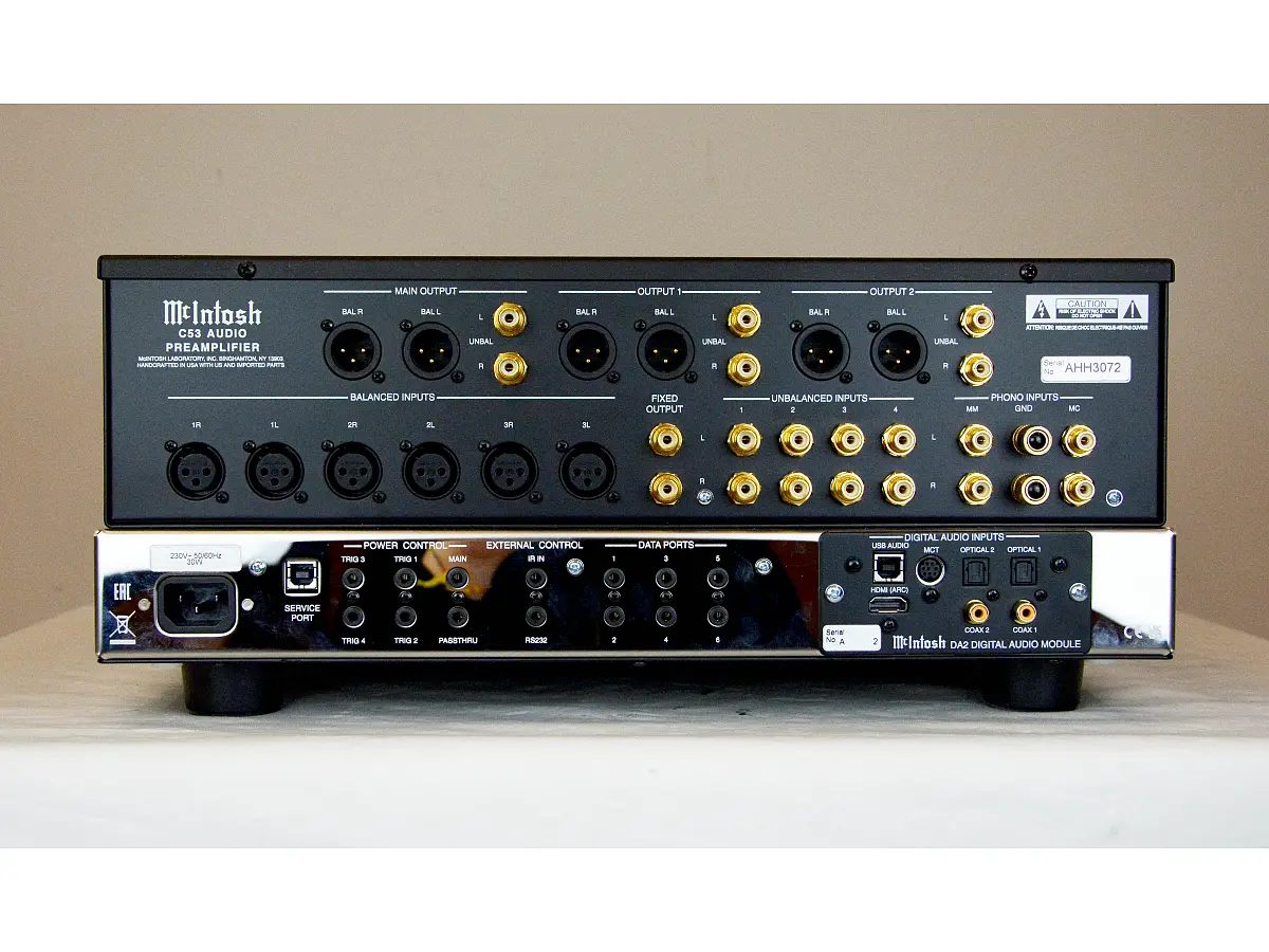 Il DA2 si basa sulle capacità del DA1, ampliandole ulteriormente. Oltre a includere tutte le stesse connessioni del DA1 (2 coassiali, 2 ottiche, 1 USB e 1 connessione proprietaria MCT per l'uso con la nostra serie MCT di trasporti SACD/CD), il DA2 introduce una nuova connessione HDMI Audio Return Channel (ARC), dedicata esclusivamente all'audio. Questa permette di collegare il preamplificatore a TV dotati di uscita HDMI (ARC) compatibile, portando la qualità del suono del televisore a un livello superiore, riproducendo l’audio attraverso il sistema stereo domestico. I formati audio multicanale più comuni di Dolby® e DTS® sono supportati e convertiti in audio a 2 canali per una riproduzione ottimale tramite il C53. Quando la comunicazione CEC è attivata sia sul C53 che sul televisore, il telecomando della TV può controllare l'accensione e il volume del C53.