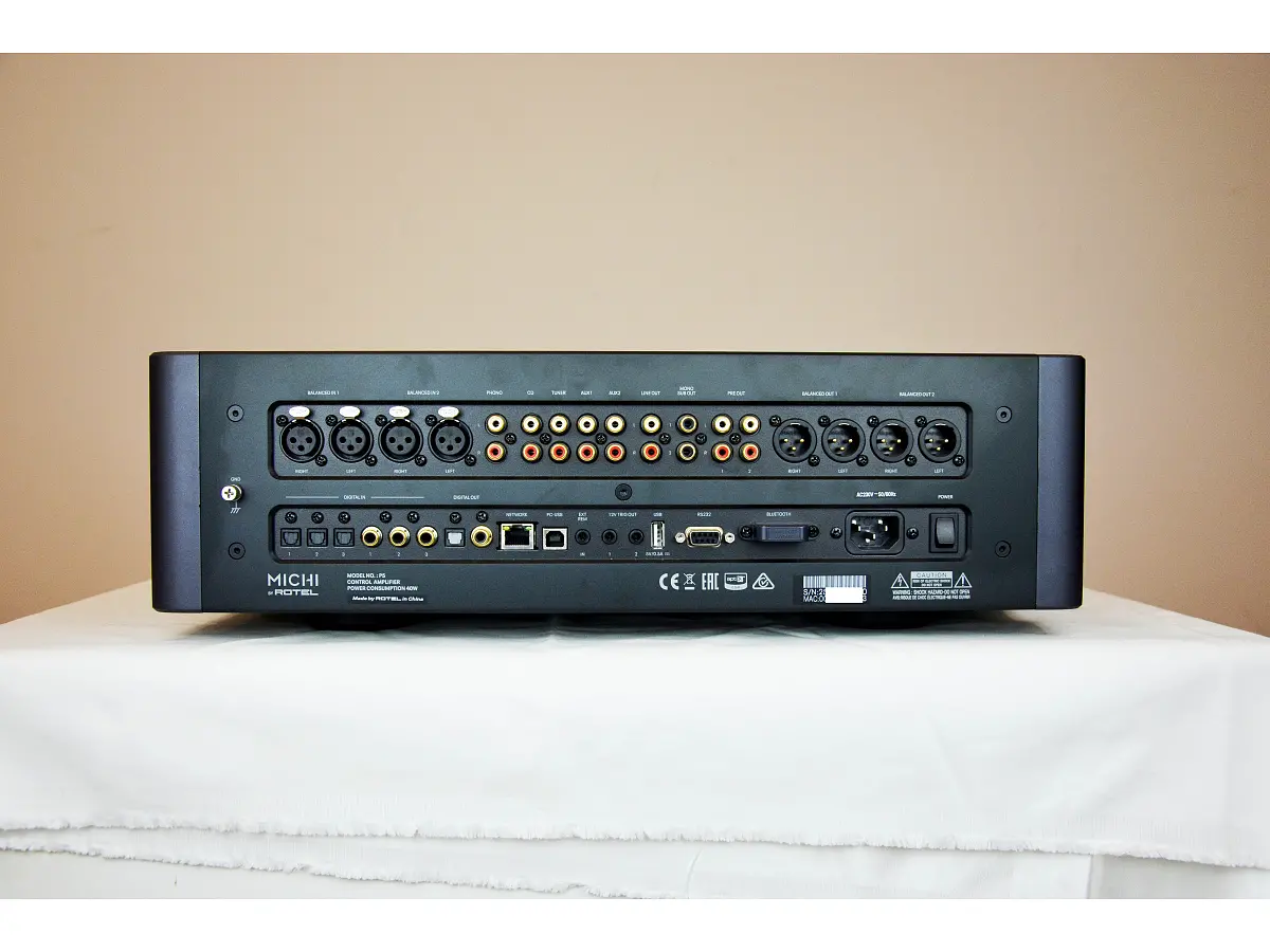 Il P5 integra un doppio DAC AKM a 32 bit e stadi di preamplificazione in Classe A, garantendo un dettaglio e una precisione eccezionali in ogni tipo di musica e a qualsiasi livello di ascolto. La combinazione di questi elementi consente una riproduzione fedele e coinvolgente, che esalta la musicalità originale di ogni registrazione. Precisione, chiarezza e dettaglio sono al centro del progetto, frutto dei cinquantacinque anni di esperienza Rotel nella realizzazione di componenti audio di eccellenza. La produzione interna assicura che ogni Michi P5 rispetti standard qualitativi elevatissimi, permettendo al preamplificatore di portare con orgoglio il marchio Michi.