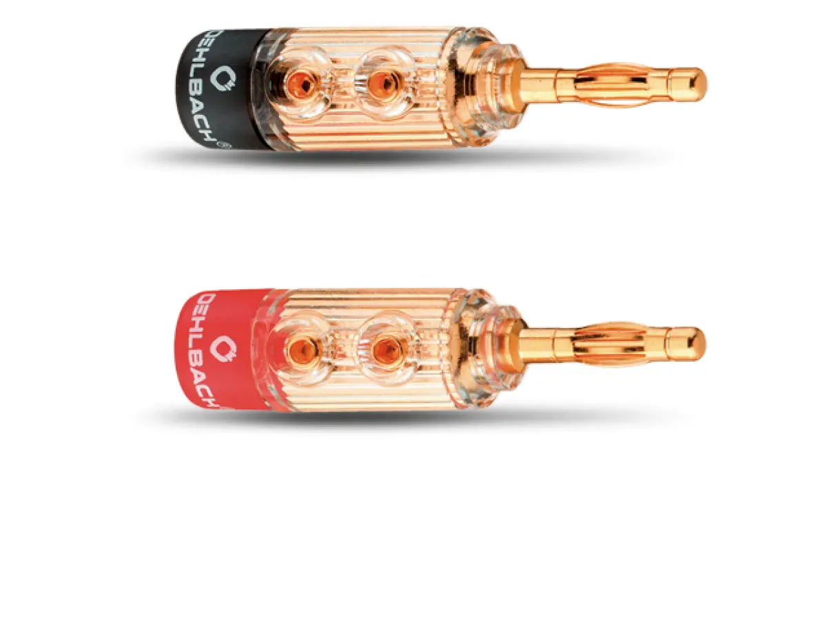 Connettori Premium a banana per l???assemblaggio degli innovativi cavi per altoparlanti FUSION Oehlbach o di analoghi cavi per altoparlanti di alta qualità. Gli spinotti consentono una connessione comoda ed ottimale dei cavi per altoparlante ad altoparlanti e componenti elettronici come ricevitori AV e amplificatori. Questa connessione a doppia vite particolarmente innovativa garantisce la qualità dei contatti affidabili e della trasmissione superiore in qualsiasi situazione grazie al connettori Oehlbach di altissima qualità. Il potenziale per cortocircuiti indesiderati viene efficacemente eliminato dal corpo massiccio completamente isolato. I contatti degli spinotti sono laminati in oro 24 carati e il passacavo è idoneo per conduttori con un diametro fino a 6,0 mm². Per un ottimale assemblaggio suggeriamo l???utilizzo di capicorda di qualità.