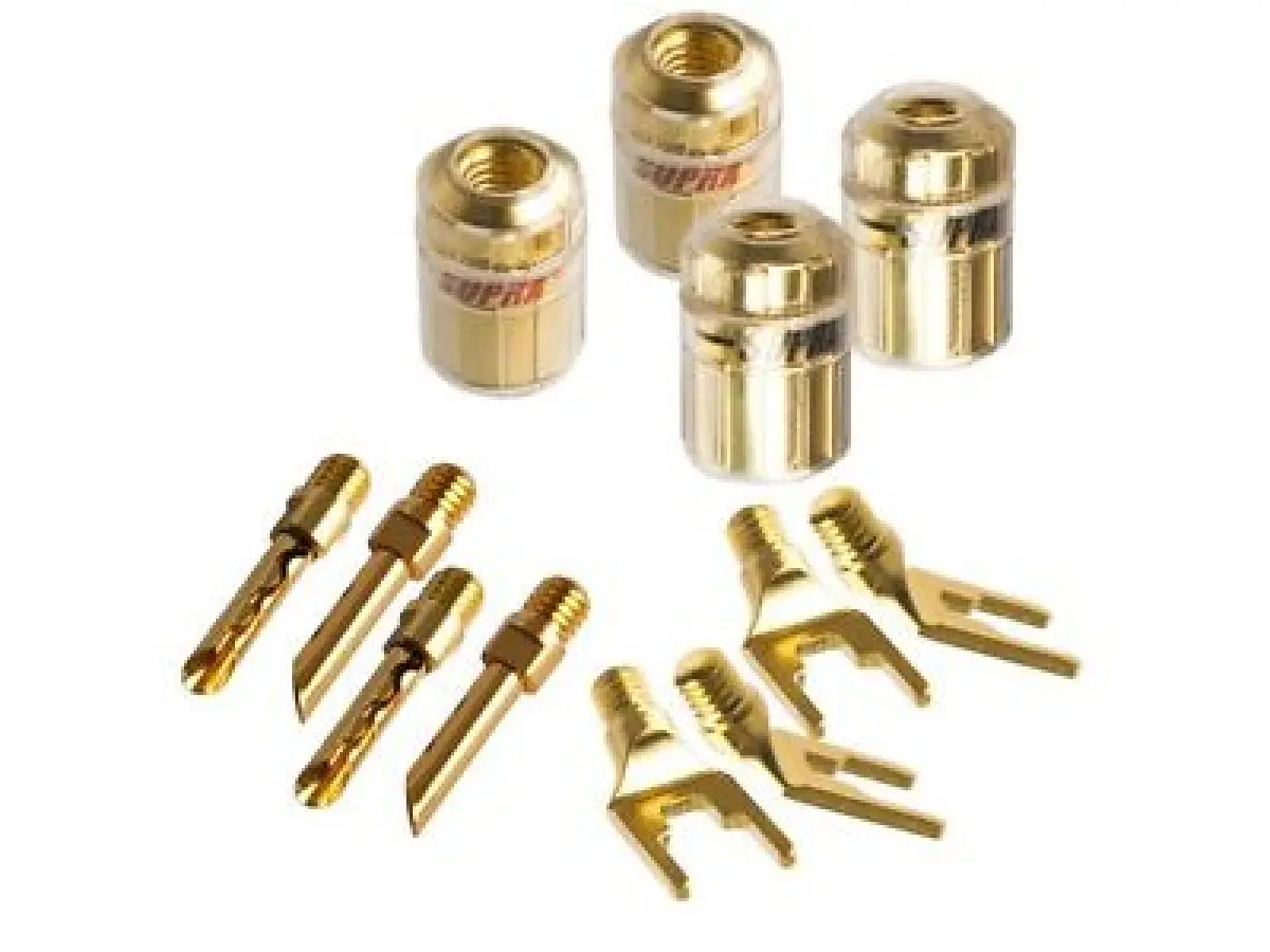 The Supra CombiCon allows for changing contacts from BFA/banana to Fork in a blink of an eye. And back again for that matter, providing for exceptional freedom and flexibility for any future desires. Electrically, the Supra CombiCon matches any of our cables and the design specification was clear-cut, it must not be a bottleneck for our Supra Sword speaker cable. Rest assure, there are no any other contact, making a better job for Supra cables, even though competing contacts often are much more expensive.