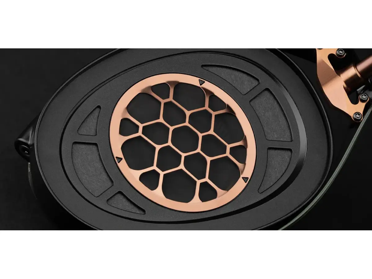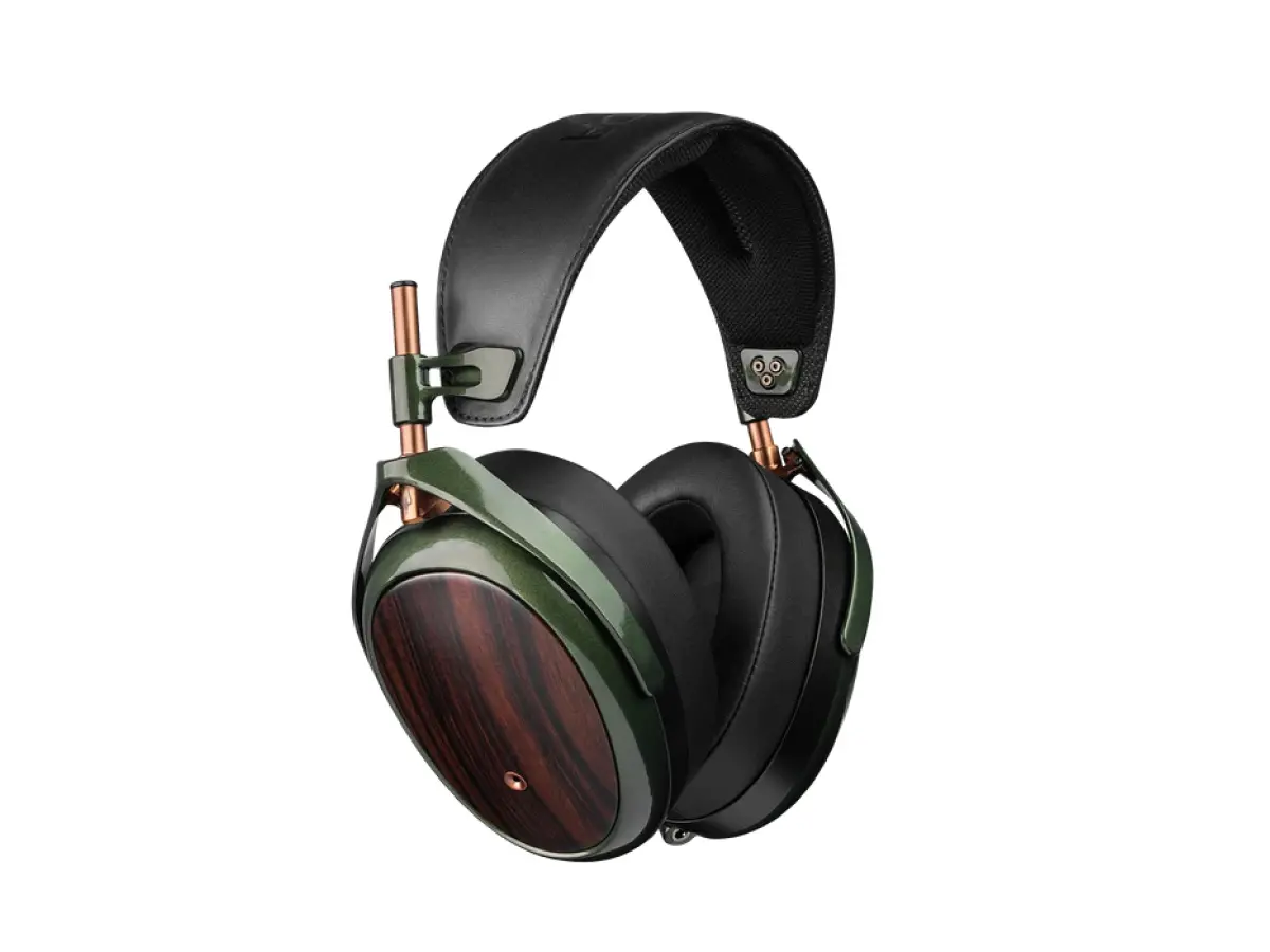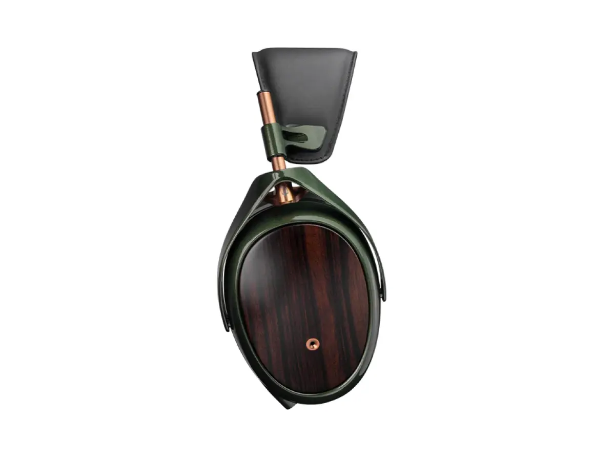 Le cuffie sono rifinite in legno Macassar, duro e denso, con un’estetica elegante caratterizzata da tonalità marrone scuro e venature dorate. I cuscinetti della fascia sono disposti su uno schema a croce simmetrica, distribuendo uniformemente la pressione e mantenendo il flusso d’aria per ridurre calore e umidità durante l’ascolto prolungato.