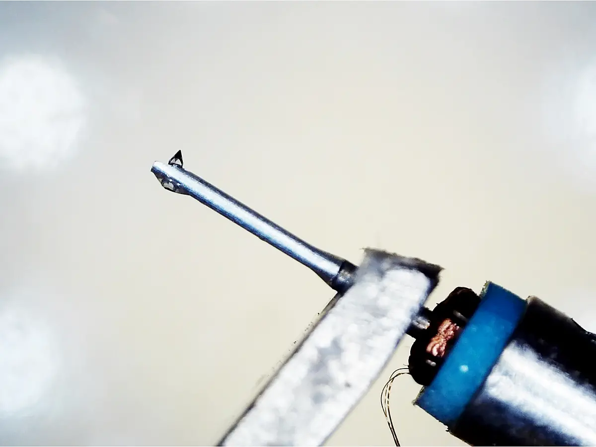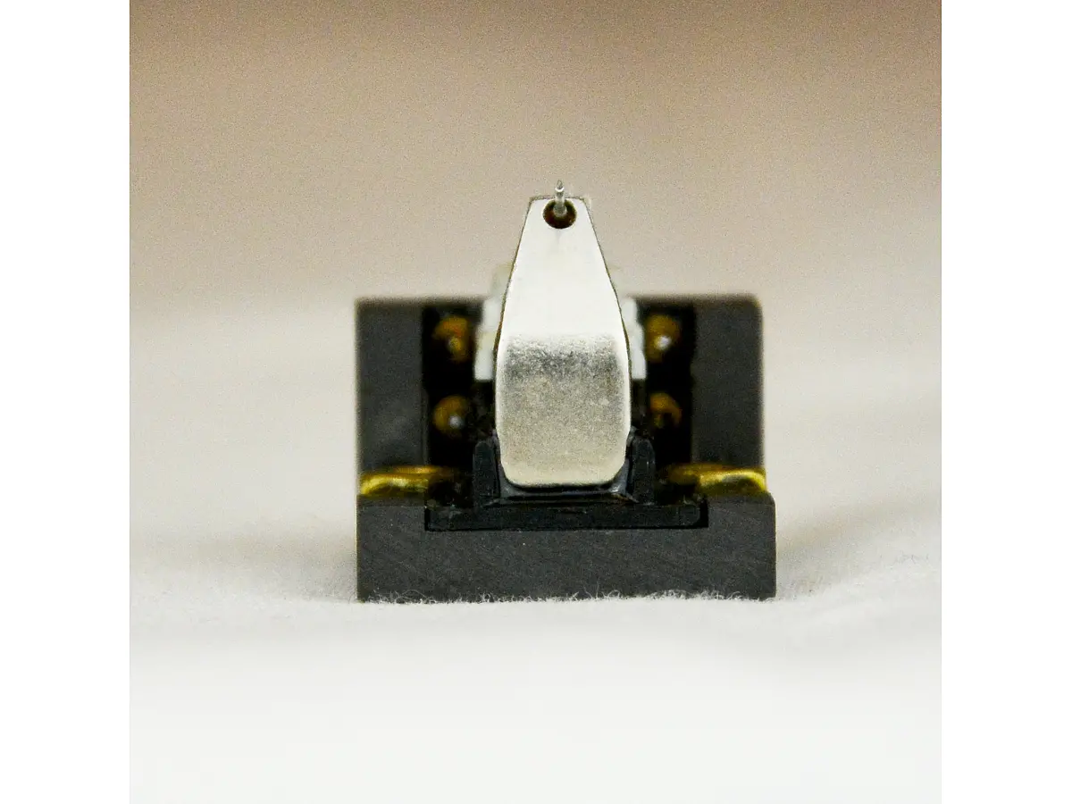 Il suo stilo, con taglio rotondo da 0,2 mm, è montato su un cantilever caratterizzato da una struttura a doppio diametro, studiata per seguire fedelmente i solchi del vinile rispettando l’orientamento dei grani del cristallo. Questa attenzione al design consente una lettura estremamente accurata dei dischi, preservando la musicalità originale delle registrazioni.