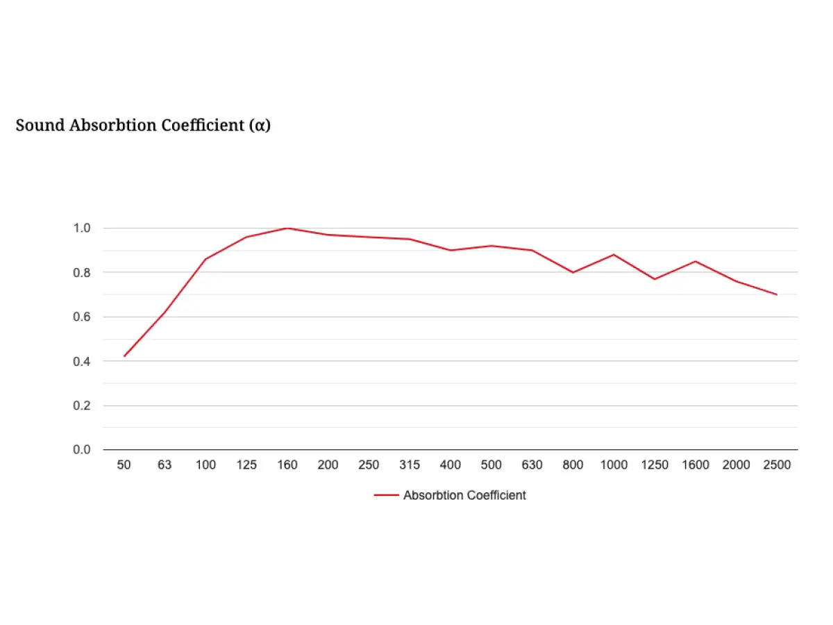 - Gamma di assorbimento acustico: 90 – 2000 Hz