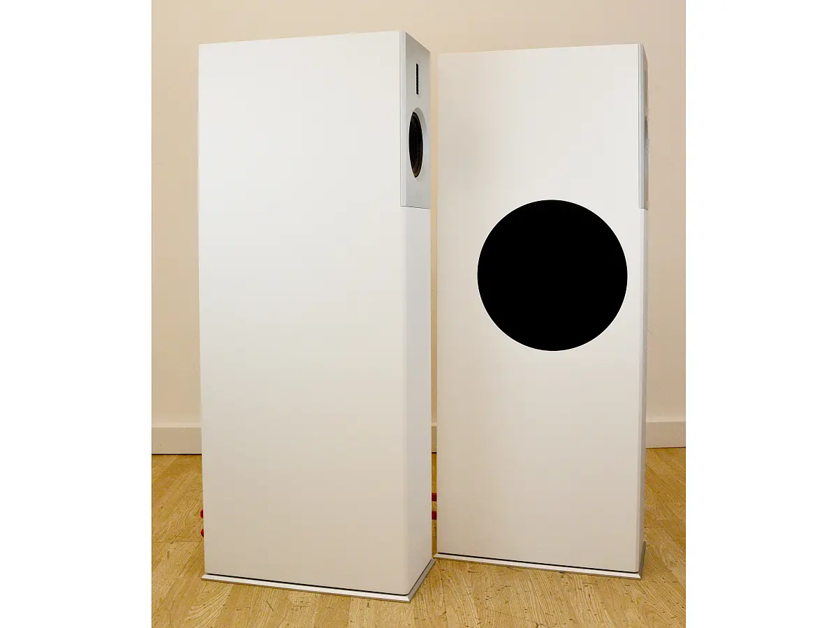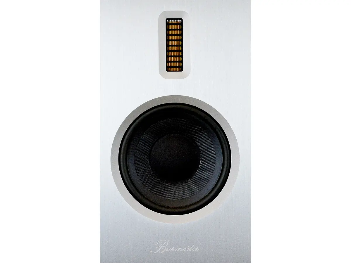 Il principio acustico adottato prevede una configurazione a tre vie con woofer laterale, studiata per combinare un design sottile ed elegante con una riproduzione dei bassi potente e incisiva, capace di impressionare l’ascoltatore senza compromettere la leggerezza estetica. Il pannello frontale integrato e privo di viti, tipico dello stile Burmester, accentua la forma slanciata del diffusore, rendendolo meno tecnico e più simile a un raffinato elemento d’arredo. La finitura in alluminio, arricchita da laccature opache di alta qualità completa l’effetto visivo di classe del diffusore.