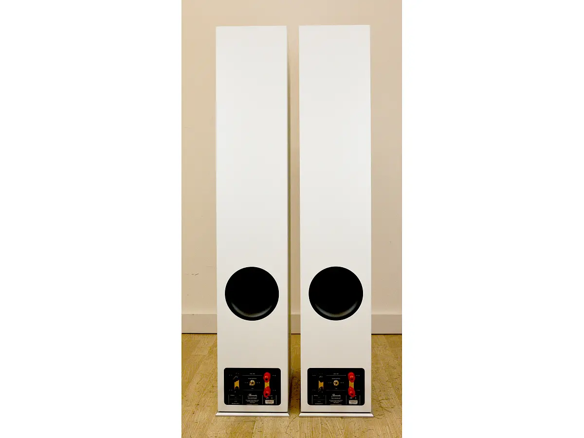 I B38 offrono anche due sistemi per personalizzare l’esperienza d’ascolto e ridurre le influenze dell’ambiente. Sul retro è presente un interruttore a due posizioni che permette un leggero roll-off dei bassi di 1-3 dB tra 150 Hz e 37 Hz. In aggiunta, un cilindro in schiuma porosa può essere inserito parzialmente o totalmente nel tubo bass reflex per modificare meccanicamente la risposta dei bassi, adattandola sia alle caratteristiche della stanza sia alle preferenze dell’ascoltatore. Il risultato è un diffusore che coniuga eleganza, versatilità e una resa sonora coinvolgente, capace di restituire ogni dettaglio musicale con naturalezza e profondità.
