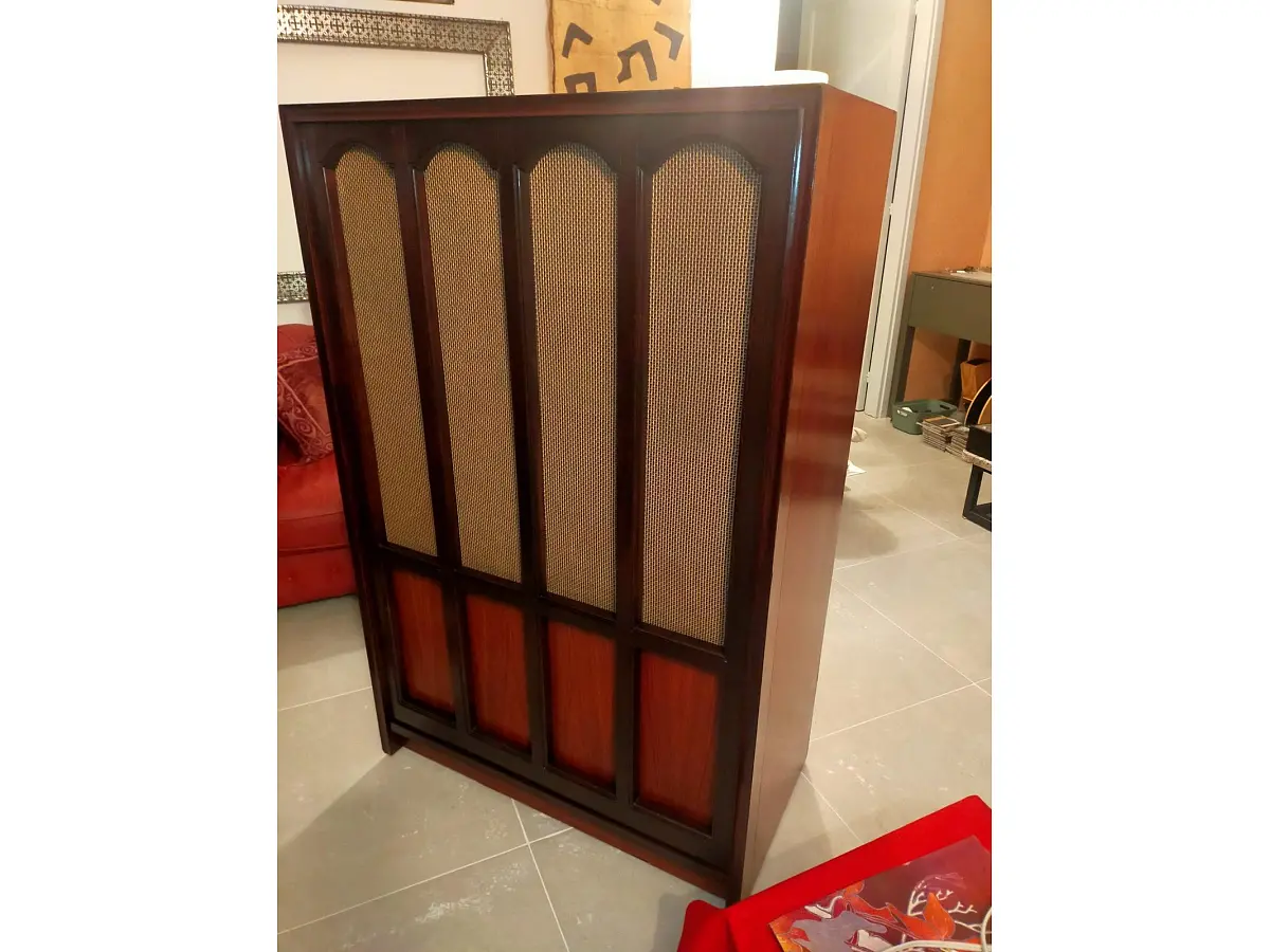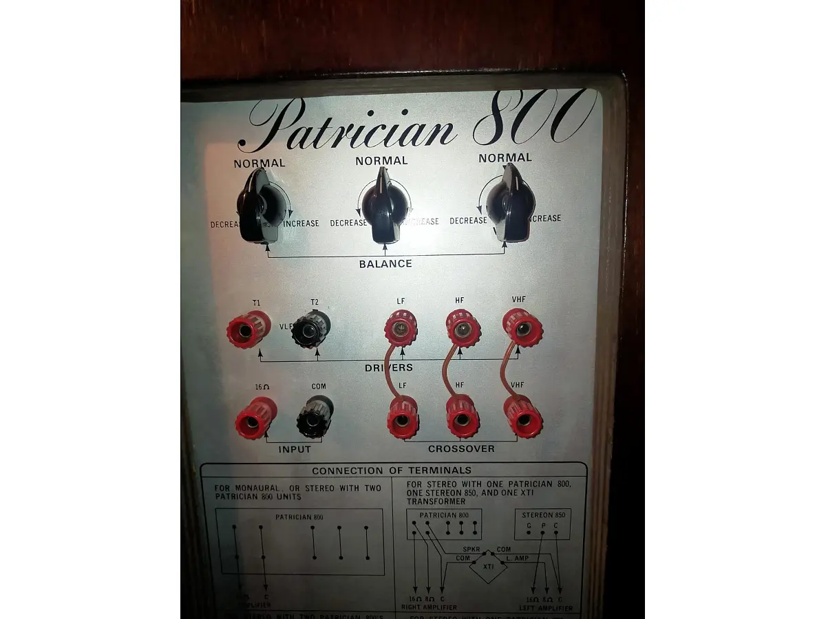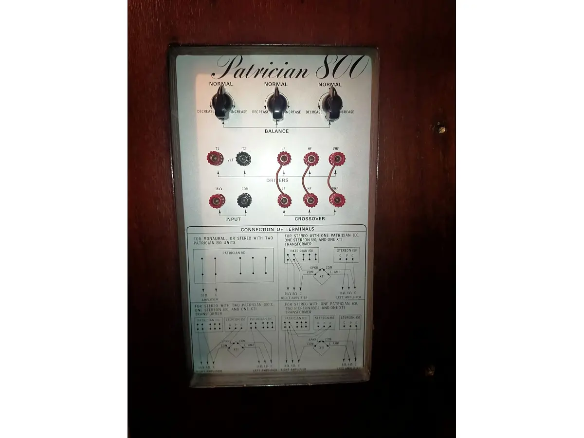 L’Electro-Voice Patrician 800 si presenta come un sistema di altoparlanti a tromba ad altissima efficienza, progettato per ambienti di ascolto molto ampi oppure per situazioni in cui si desidera un livello sonoro elevato anche a breve distanza. La configurazione utilizza cinque trasduttori la cui integrazione risulta complessivamente buona, pur mantenendo alcune caratteristiche timbriche proprie di ciascun componente. In gamma bassa, soprattutto quando il diffusore viene collocato in angolo come previsto dal progetto, la resa si estende fino a circa 20 Hz in ambienti adeguati, offrendo un basso pieno e imponente, sebbene talvolta leggermente morbido e non perfettamente controllato. Il sistema consente un’ampia regolazione dei livelli dei singoli altoparlanti, permettendo di modellare il carattere sonoro da molto diretto e incisivo a più scuro e corposo, fino a trovare un equilibrio intermedio in base alle preferenze e all’acustica dell’ambiente.