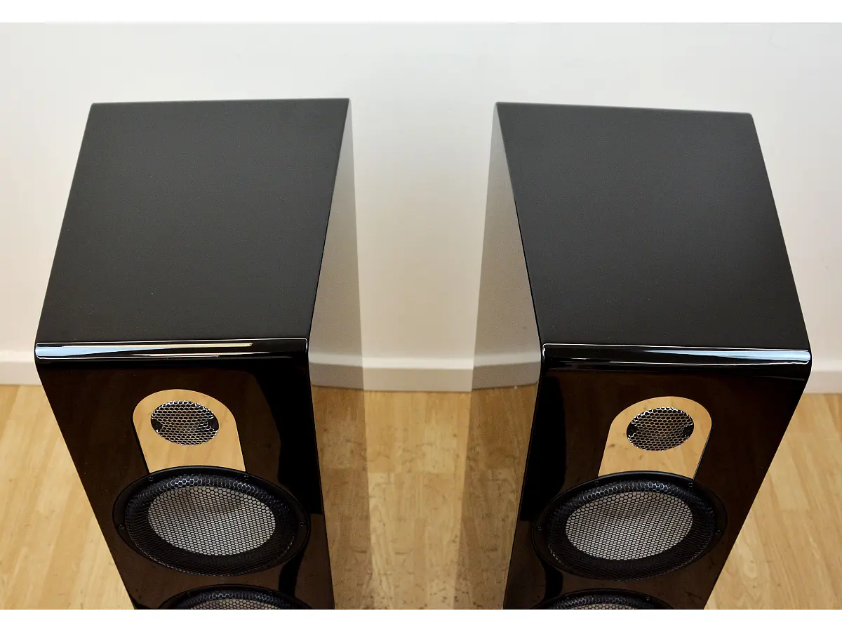 Il diffusore adotta una configurazione 2,5 vie con due woofer/medio gamma ceramici progettati su misura e un raffinato sistema di crossover multi-diverso, sviluppato attraverso ore di ascolto, simulazioni e misurazioni precise. La sensibilità elevata di 91 dB garantisce una risposta dinamica potente e dettagliata, capace di valorizzare ogni tipo di registrazione.