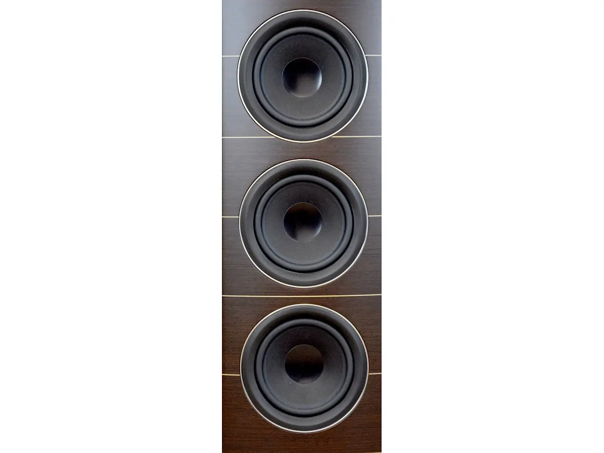 Il tweeter da 28 mm a cupola morbida in seta con tecnologia DAD™, il midrange da 150 mm con membrana in polpa di cellulosa e fibre naturali come kapok e kenaf, asciugata all’aria, e i tre woofer da 180 mm con cono sandwich e dust-cap in tessuto impregnato, garantiscono un’estensione e una definizione sonora di altissimo livello. Il cono dei woofer, formato da due strati di polpa di cellulosa accoppiati da uno strato di schiuma sintetica, e le bobine mobili più lunghe contribuiscono a un controllo superiore delle frequenze basse.