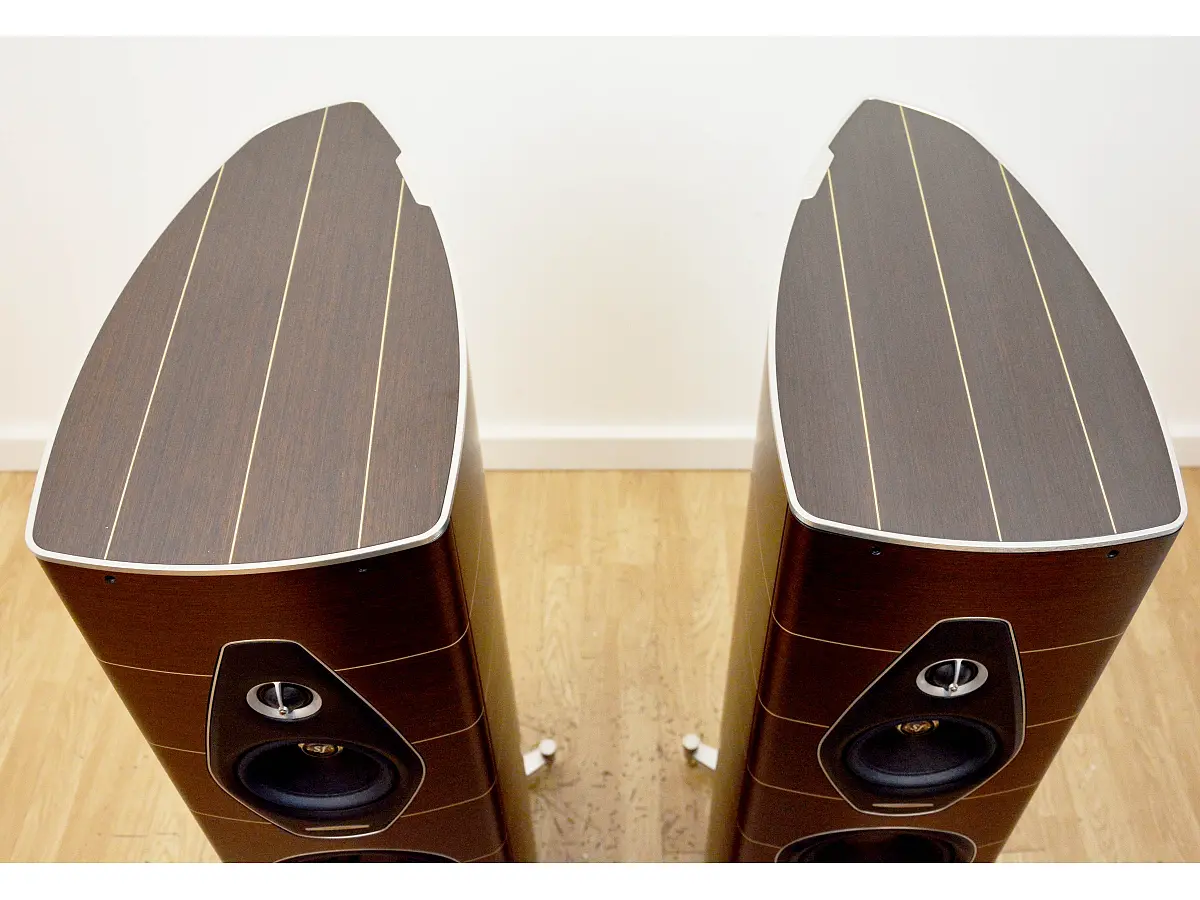 Olympica Nova V si distingue come l’ammiraglia della collezione Olympica Nova e rappresenta l’essenza del caratteristico Suono Naturale di Sonus faber. Questo diffusore da pavimento a tre vie incarna una potenza sonora straordinaria, soprattutto nelle basse frequenze, grazie alla presenza di ben tre woofer che lavorano in sinergia con i medi e gli alti per offrire un suono caldo, articolato e avvolgente. La forma asimmetrica a liuto del cabinet, realizzato con cura artigianale, riduce al minimo le risonanze interne garantendo una purezza sonora rara da trovare.