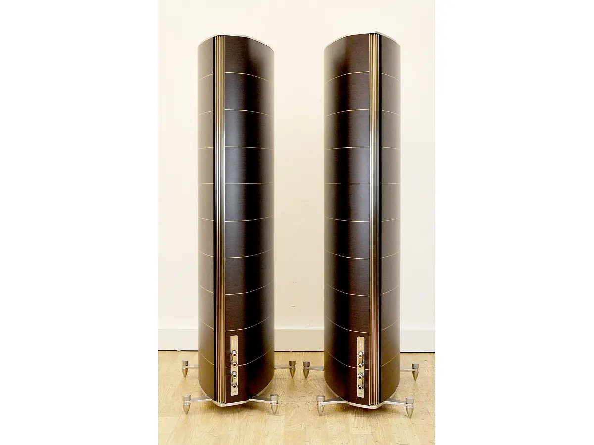 Non si tratta solo di un diffusore, ma di un vero e proprio esempio di lavorazione contemporanea del legno, capace di integrarsi con eleganza in qualsiasi ambiente di ascolto, donando un tocco raffinato allo spazio. La struttura a torre, caratterizzata da un design slanciato, combina impiallacciature in legno e inserti in alluminio, con il frontale in noce o wengé rifinito a mano e incastonato in una robusta piastra di alluminio pressofuso. Gli anelli in cuoio italiano, applicati a mano attorno ai woofer nella fabbrica di Vicenza, sottolineano la cura e l’attenzione dedicata ai dettagli, un tratto distintivo del marchio.