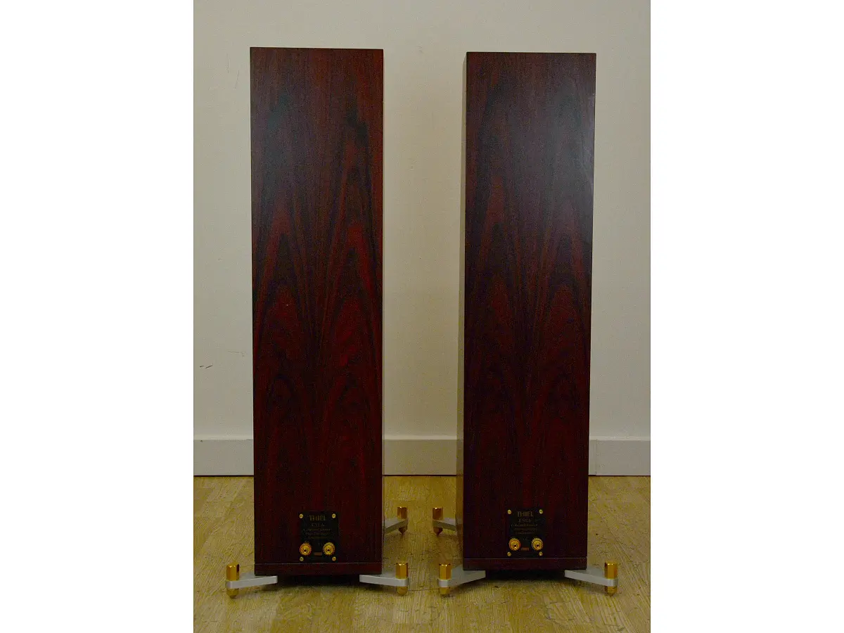 Il crossover, come da tradizione Thiel, è di tipo “Coherent Source”, un filtro del primo ordine ottimizzato in fase che, unito all’inclinazione del pannello frontale, permette ai segnali dei due altoparlanti di raggiungere l’ascoltatore in perfetta sincronia. I connettori posteriori, robusti e ben posizionati, sostituiscono finalmente quelli collocati alla base nei modelli precedenti, rendendo l’installazione più pratica e ordinata.